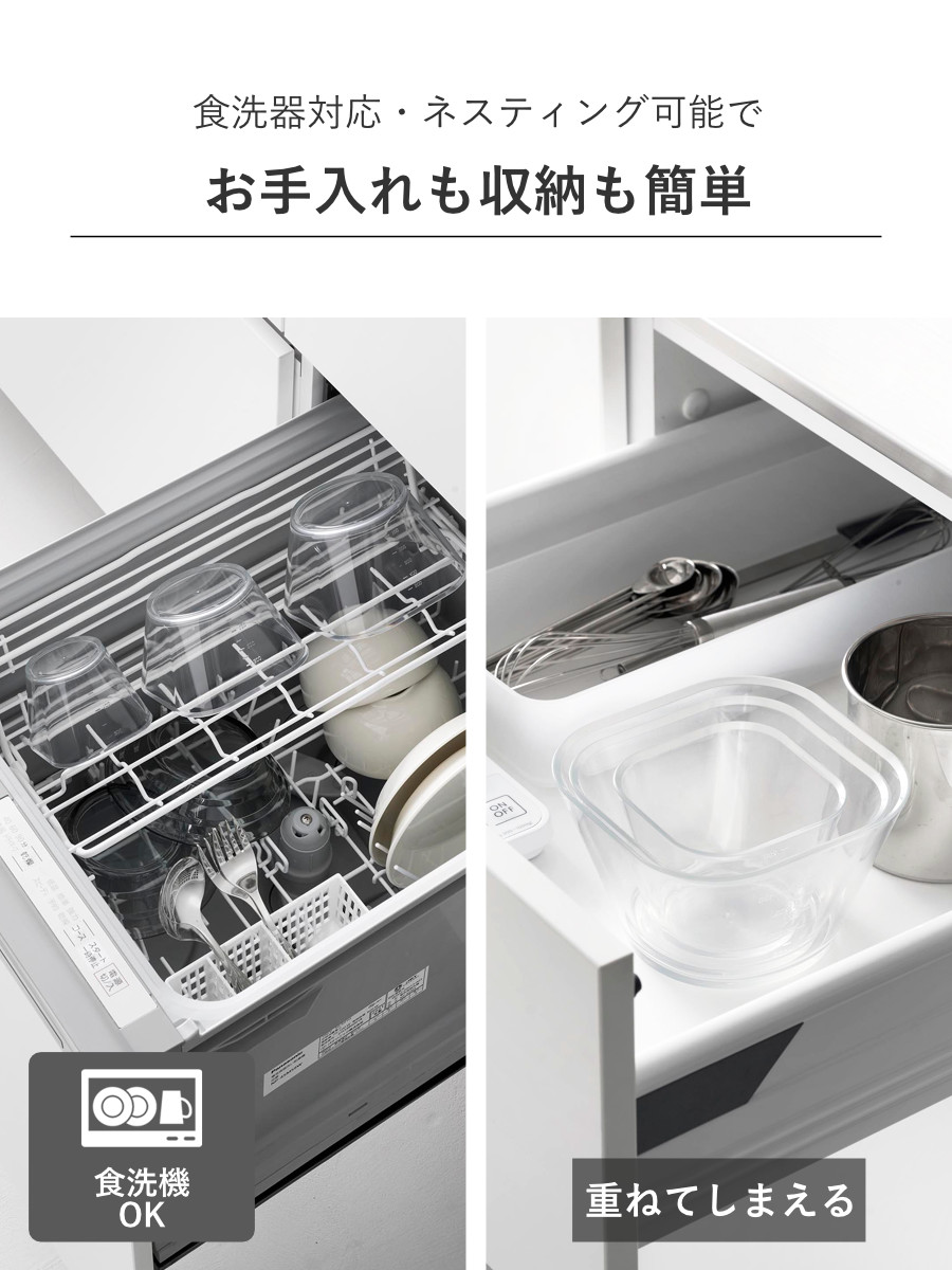 食洗機使用可能なので、毎日のお手入れも楽々です。重ねてしまえて収納にも困りません。