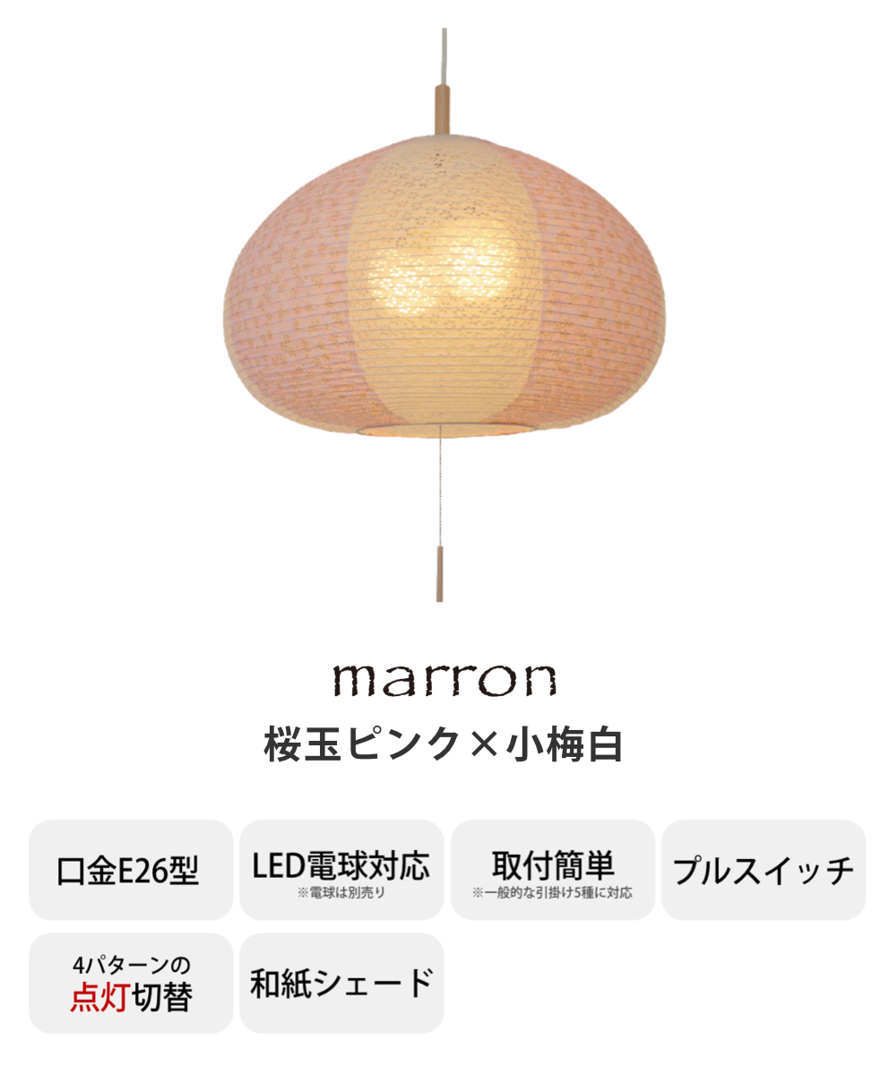 ペンダントライト 2灯 marron 揉み紙 桜玉ピンク×小梅白 日本製 和風 天井照明 ( LED電球対応 美濃 和紙 照明 ライト 吊り下げ照明 吊るす 照明器具 和モダン モダン シンプル ナチュラル おしゃれ こだわり 花柄 柄 )