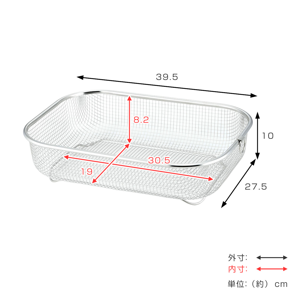 水切りカゴ サッと使える シンプル 水切りかご ステンレス製 ( 水切りラック 水切りバスケット 日本製 ステンレス 水切り シンク上 燕三条 食洗機対応 ざる ザル コンパクト スリム 浅型 カゴ おしゃれ )