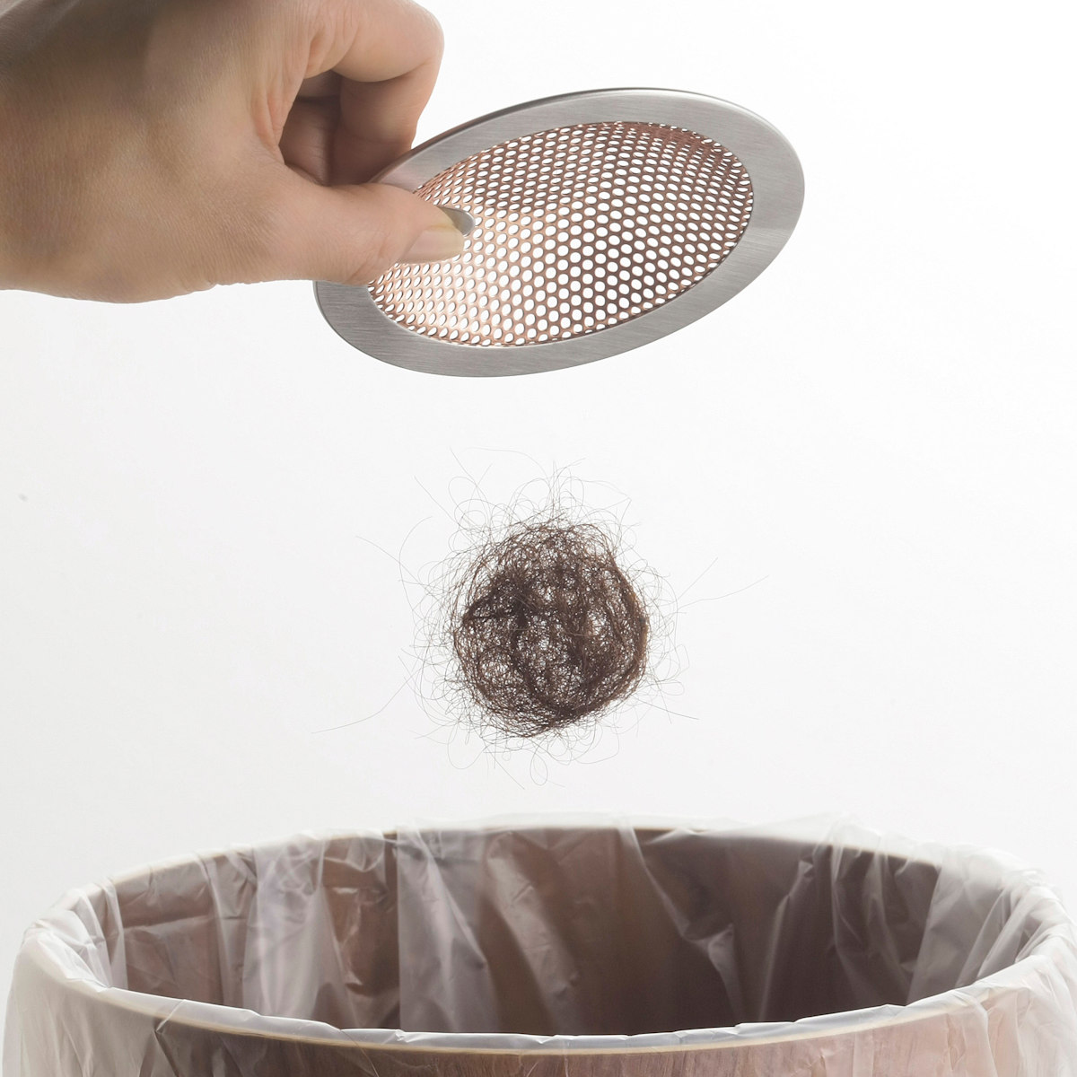 メッシュ網のように目詰まりすることのない、パンチング(穴あき)タイプです。サッと水で流すだけで、髪の毛などの溜まったゴミも取れやすいです。絡まって手間の掛かる煩わしさもなく、ポンッと簡単に捨てられるので大変便利です。