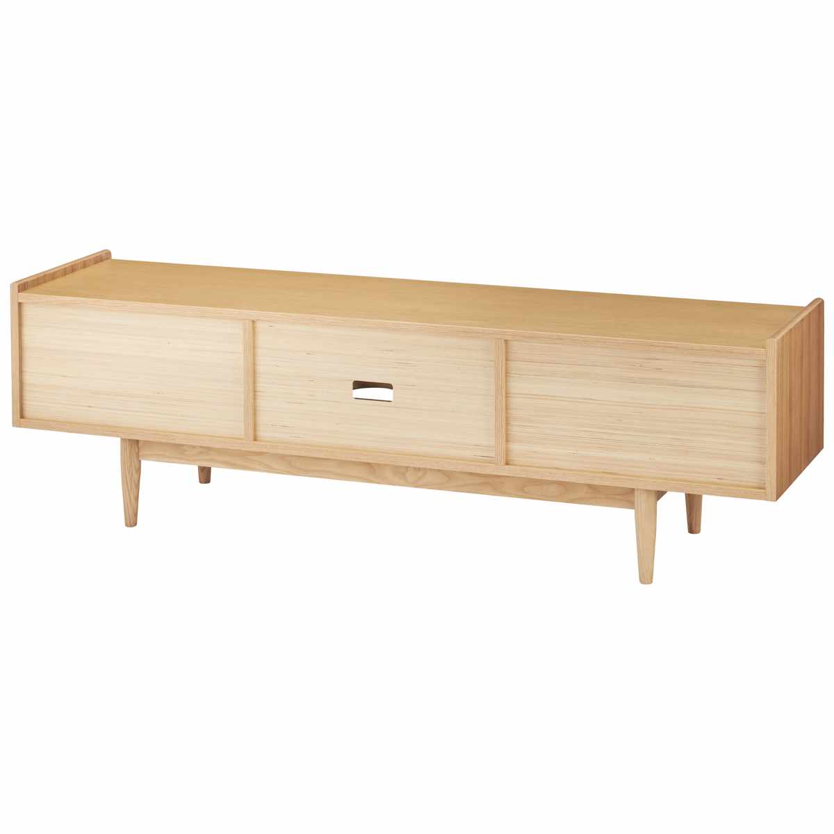 天板はアッシュ材の繊細で美しい木目が全面に活かされています。耐荷重は約40kgまであり、大型のテレビにも対応可能です。