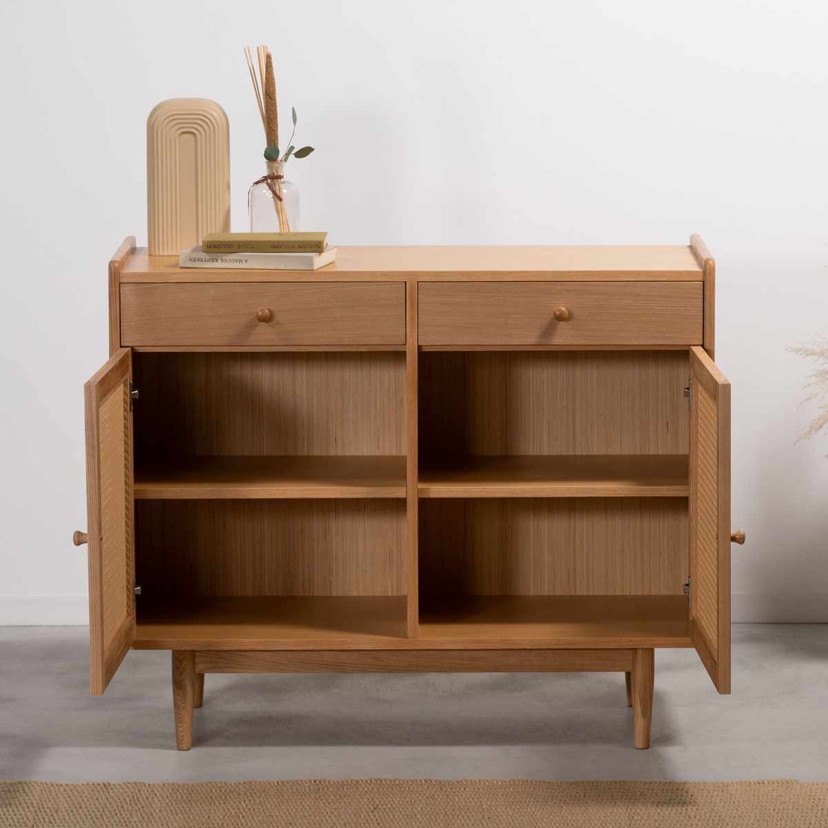 ナチュラルに暮らしになじむラタン調キャビネット 幅100cm