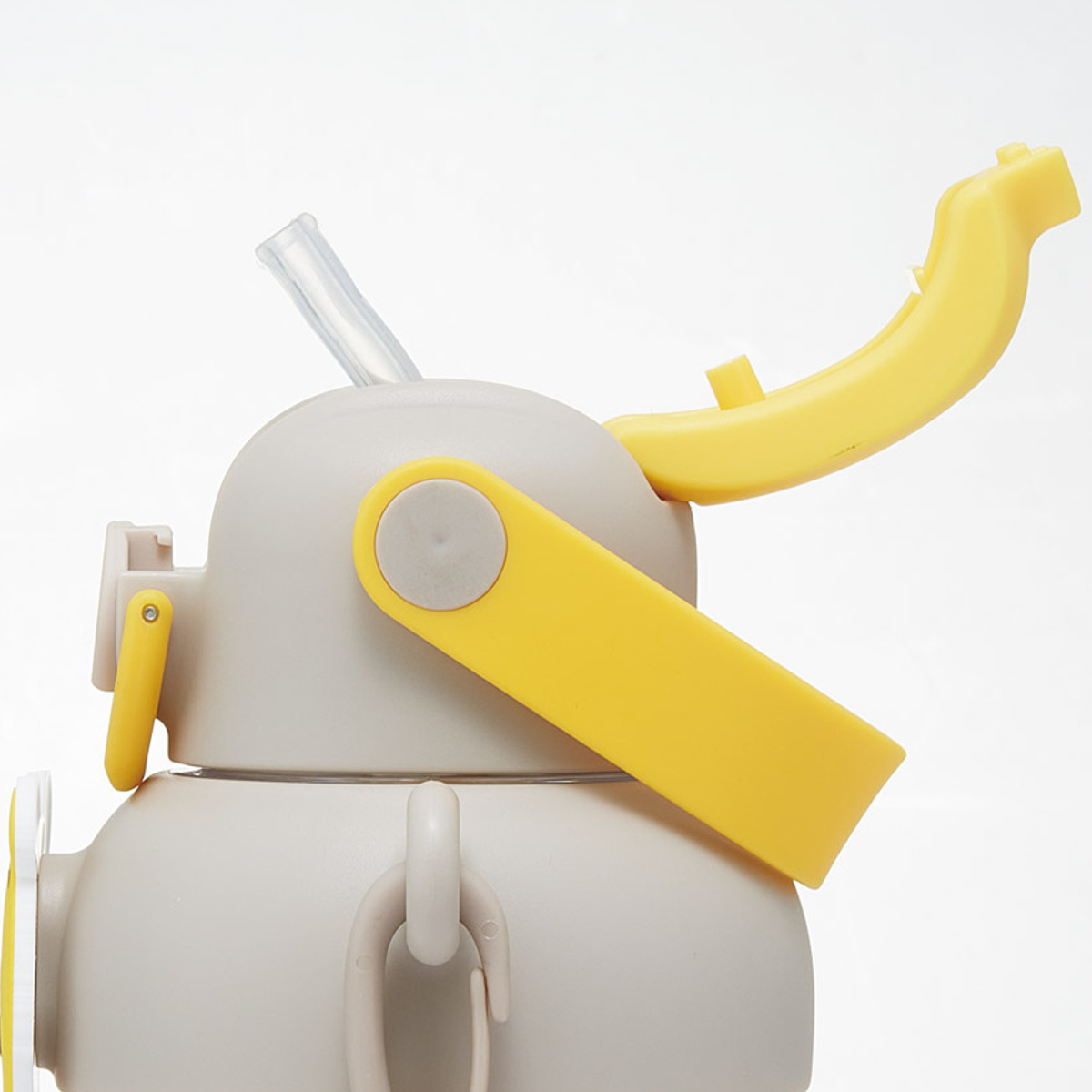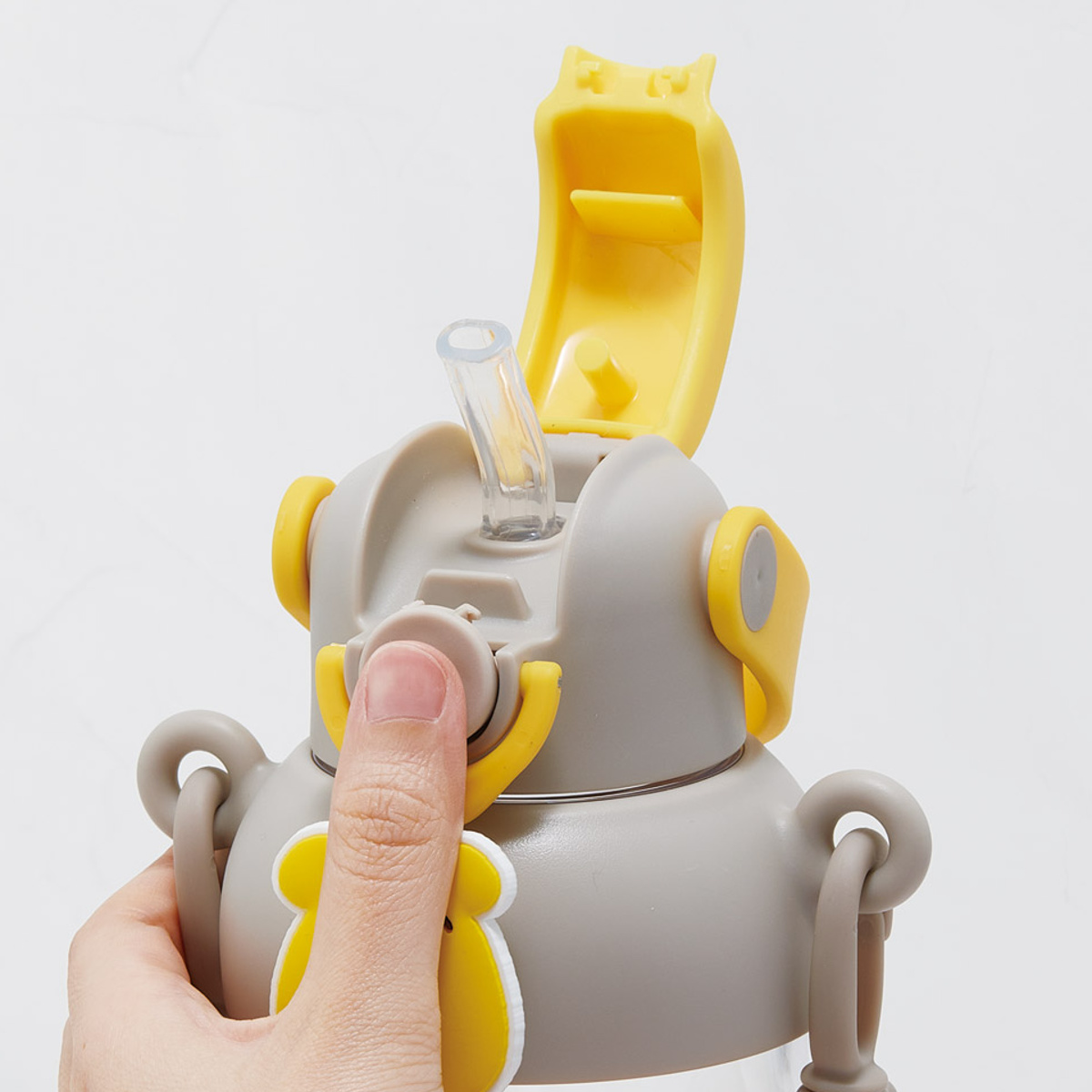 ワンプッシュで飲めるラバーマスコット付きストローボトル