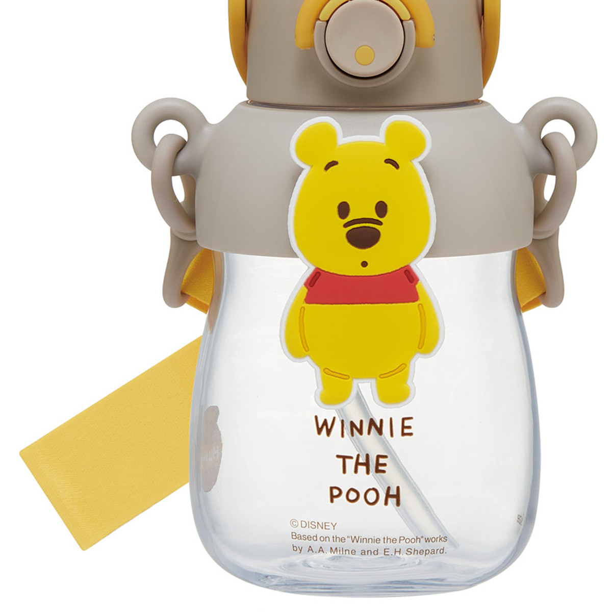 水筒 650ml ラバーマスコット付ストローボトル くまのプーさん ( ストロー付ボトル ストローボトル クリアボトル ワンプッシュ ワンタッチ ストロータイプ 子供 子供用水筒 クリア ショルダーベルト 幼稚園 保育園 キッズ )