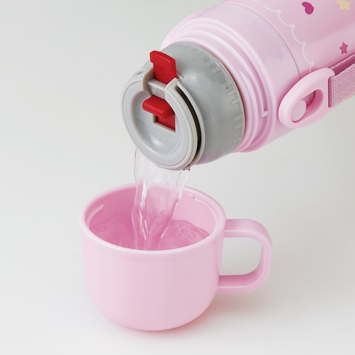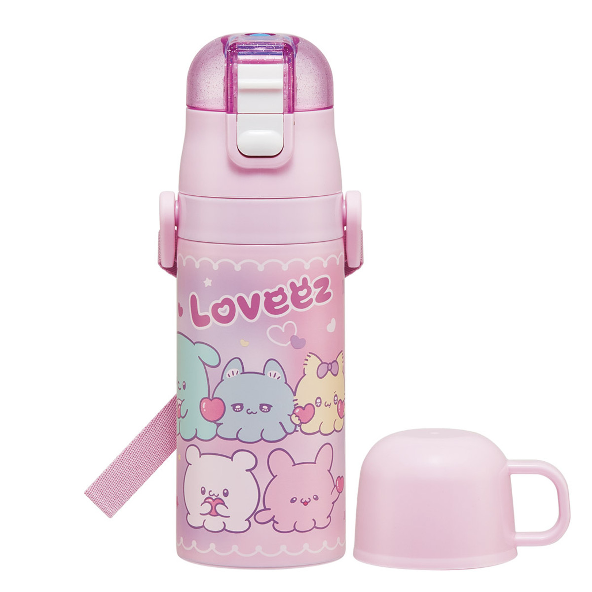 水筒 350ml 子供用2WAYボトル らぶい~ず ( 保温 保冷 ワンタッチ 直飲み コップ飲み ダイレクトボトル ステンレスボトル 2way ワンプッシュ 軽量 子供 子供用水筒 幼稚園 保育園 肩紐付き キッズ ボトル )