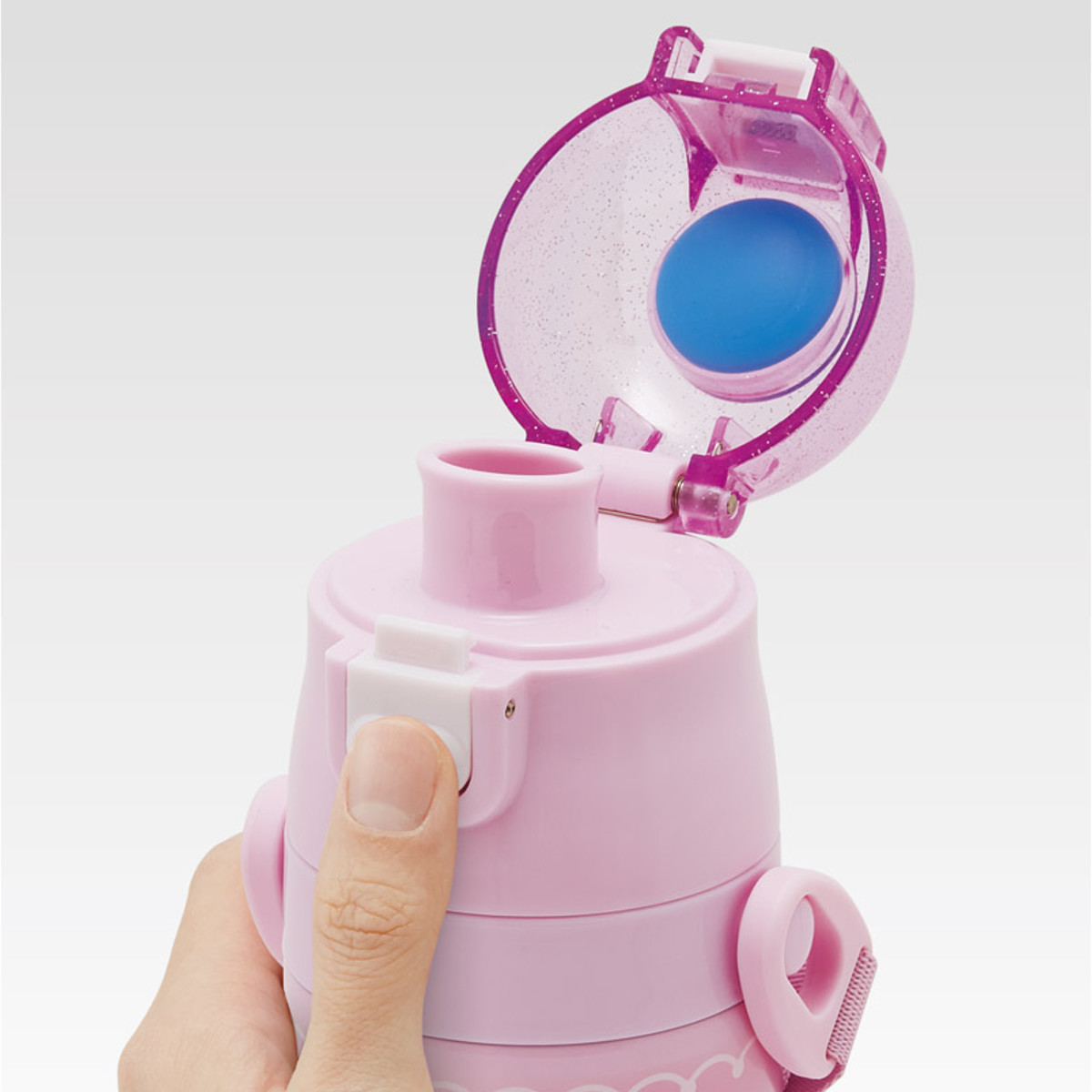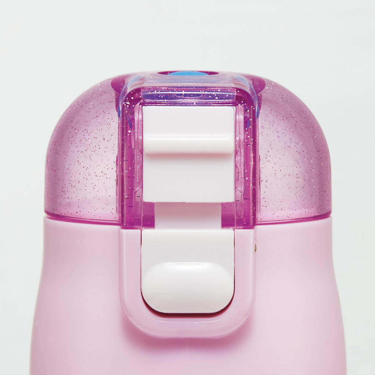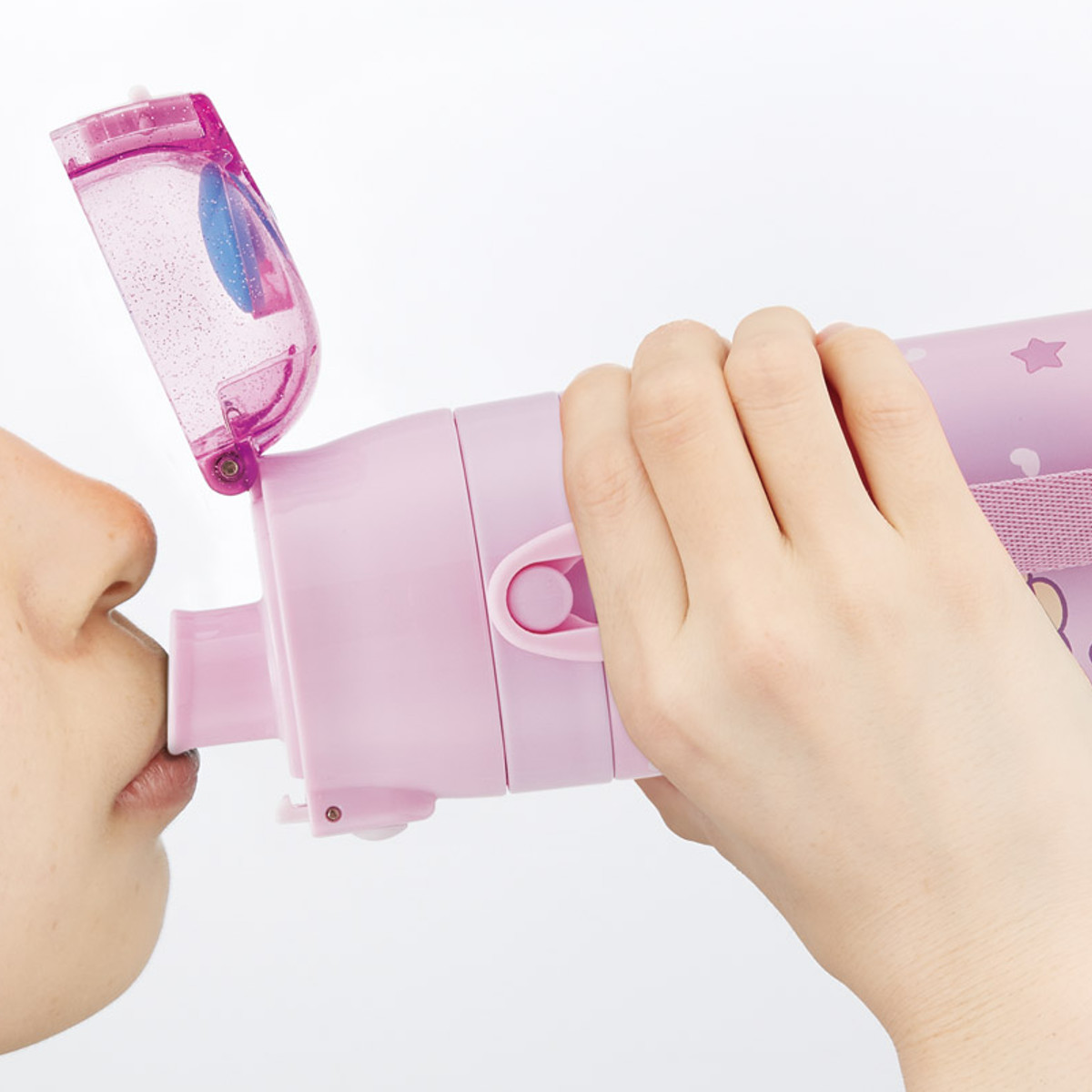 水筒の蓋はボタンを押すだけで開けることができるワンタッチ式です。飲み終わったら蓋をカチッと閉めるだけなので、小さなお子様でも簡単に開閉できます。