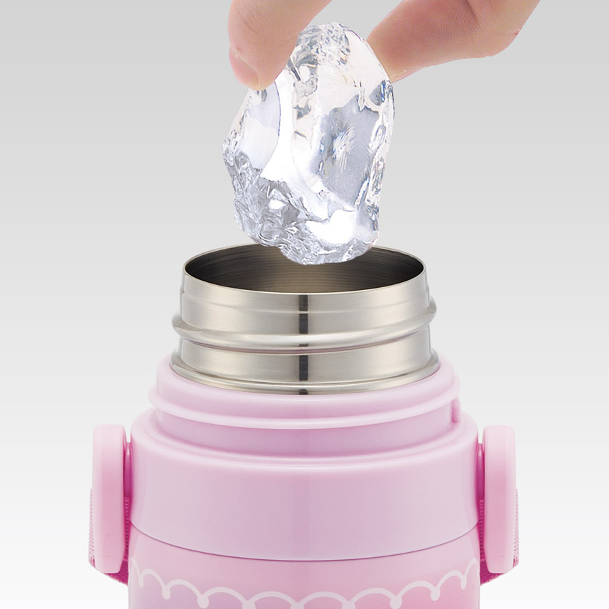 蓋と中栓を付けると、コップ飲みの水筒になります。温かい飲み物や冷たい飲み物にもご使用いただけます。