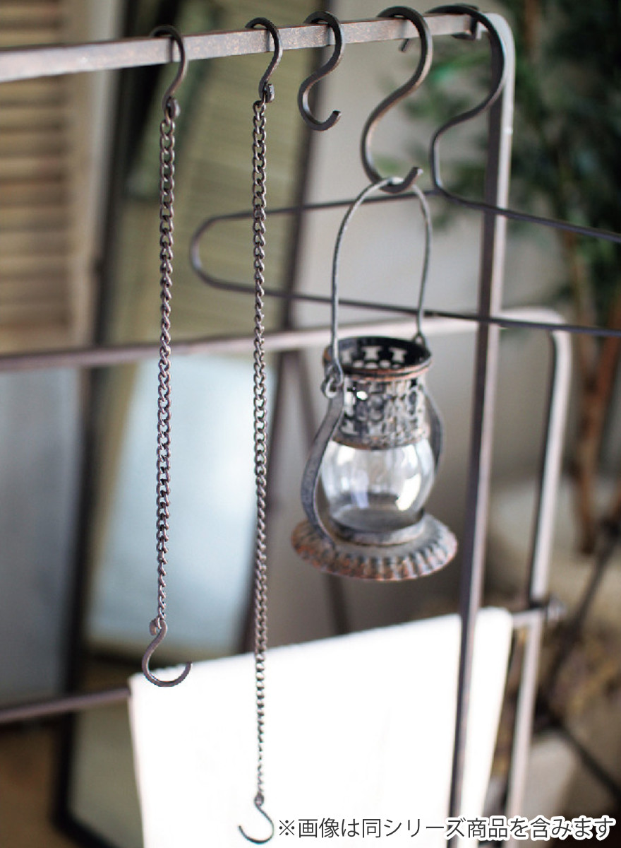 アイアンでつくられたアンティーク調のチェーンフックです。お気に入りのアイテムをチェーンフックでディスプレイすれば、空間に個性的な雰囲気が漂います。