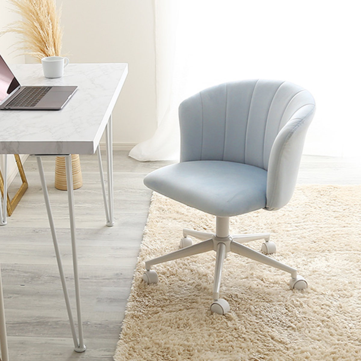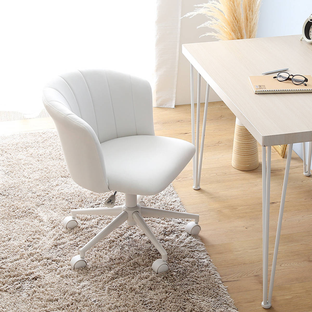 貝殻のようなシルエットが可愛いデスクチェアです。見た目の華やかさだけでなく、肌触りの良いスエード調の生地と、長時間座っていても疲れにくいふかふかな座面も大きな魅力。デザイン性と快適さを兼ね備えた椅子が暮らしに彩りをプラスします。