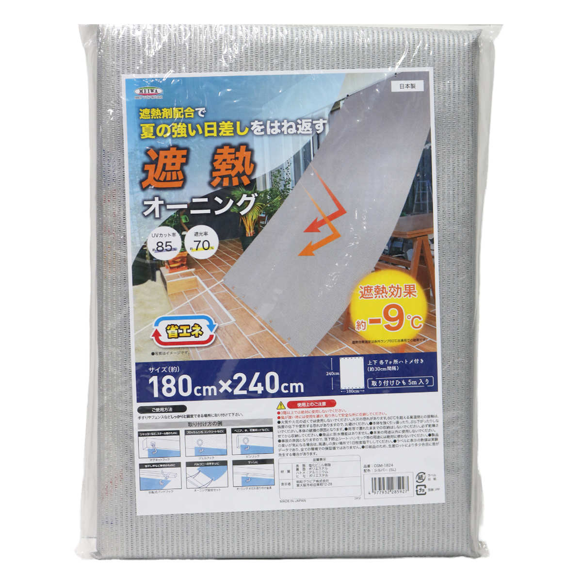 ●強い日差しをはね返す遮熱オーニング180×240cmです。