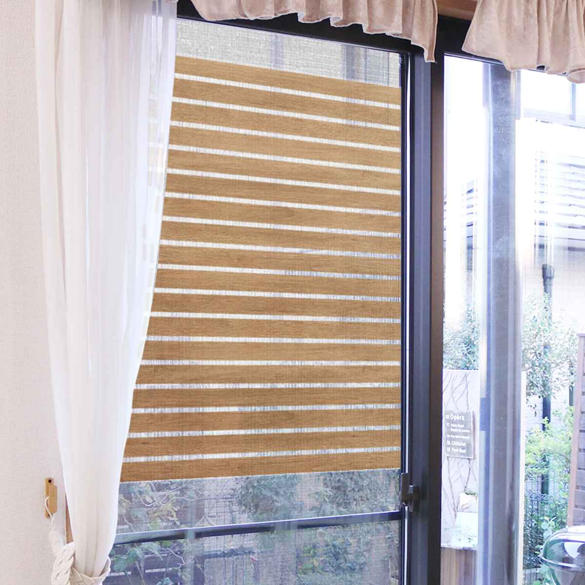外の風を取り込みつつ外からの気になる視線を遮り、快適な空間を実現します。温かみのある木目調ブラウンと、爽やかなリーフ柄グリーンの2種類からお選びいただけます。