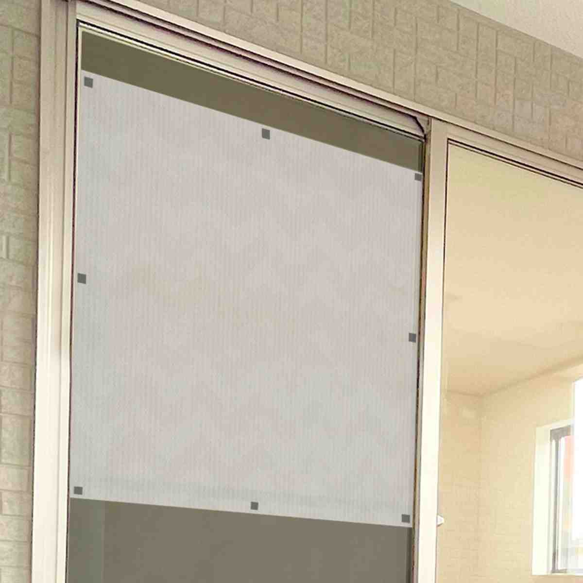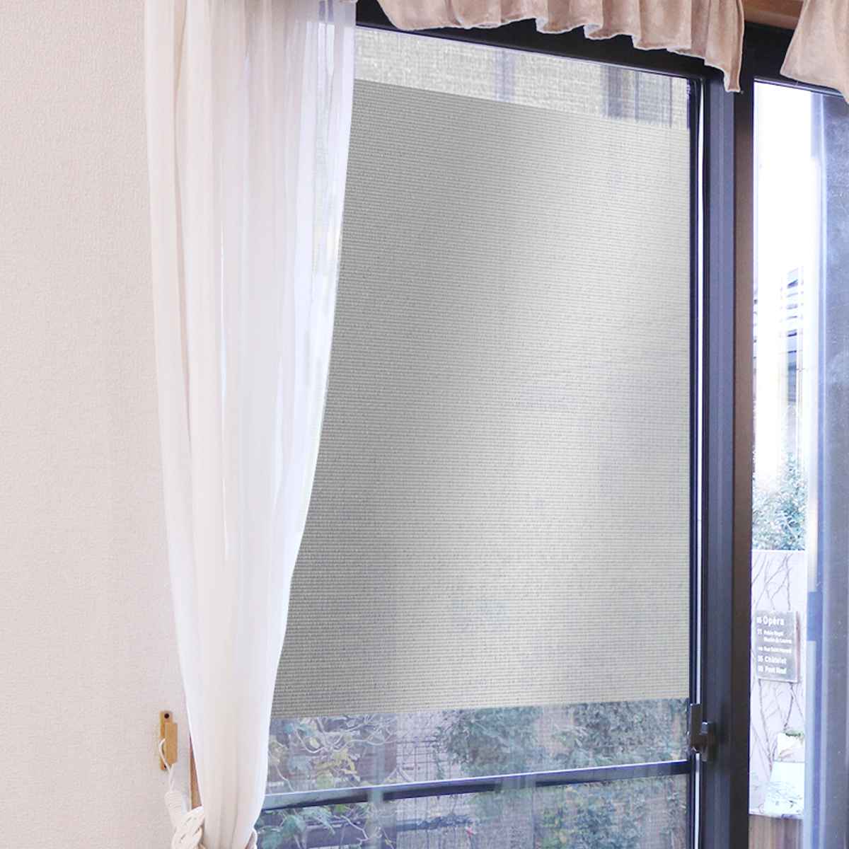 網戸シート 網戸に取り付ける 目隠しシート 遮光 遮熱 90cm×90cm ( 網戸 シート 日除け 目隠し 省エネ 日差し エコ 暑さ対策 留め具付き 窓 サッシ 日よけ 日焼け 防犯 プライバシー対策 簡単設置 遮熱シート 遮光シート ) 【シルバー】
