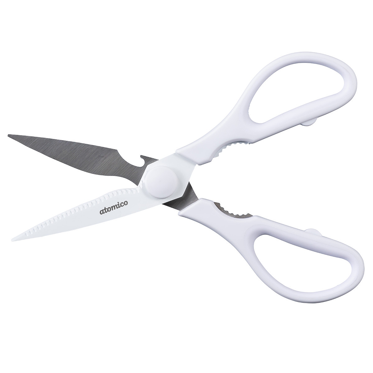 キッチンばさみ atomico 食洗機対応 洗いやすいキッチンバサミ ( キッチン鋏 キッチンはさみ アトミコ キッチンハサミ 万能ばさみ はさみ フッ素加工 分解 洗える 調理用はさみ ステンレス キッチンツール 下ごしらえ用品 ) 【ホワイト】