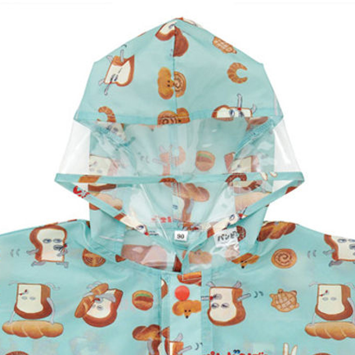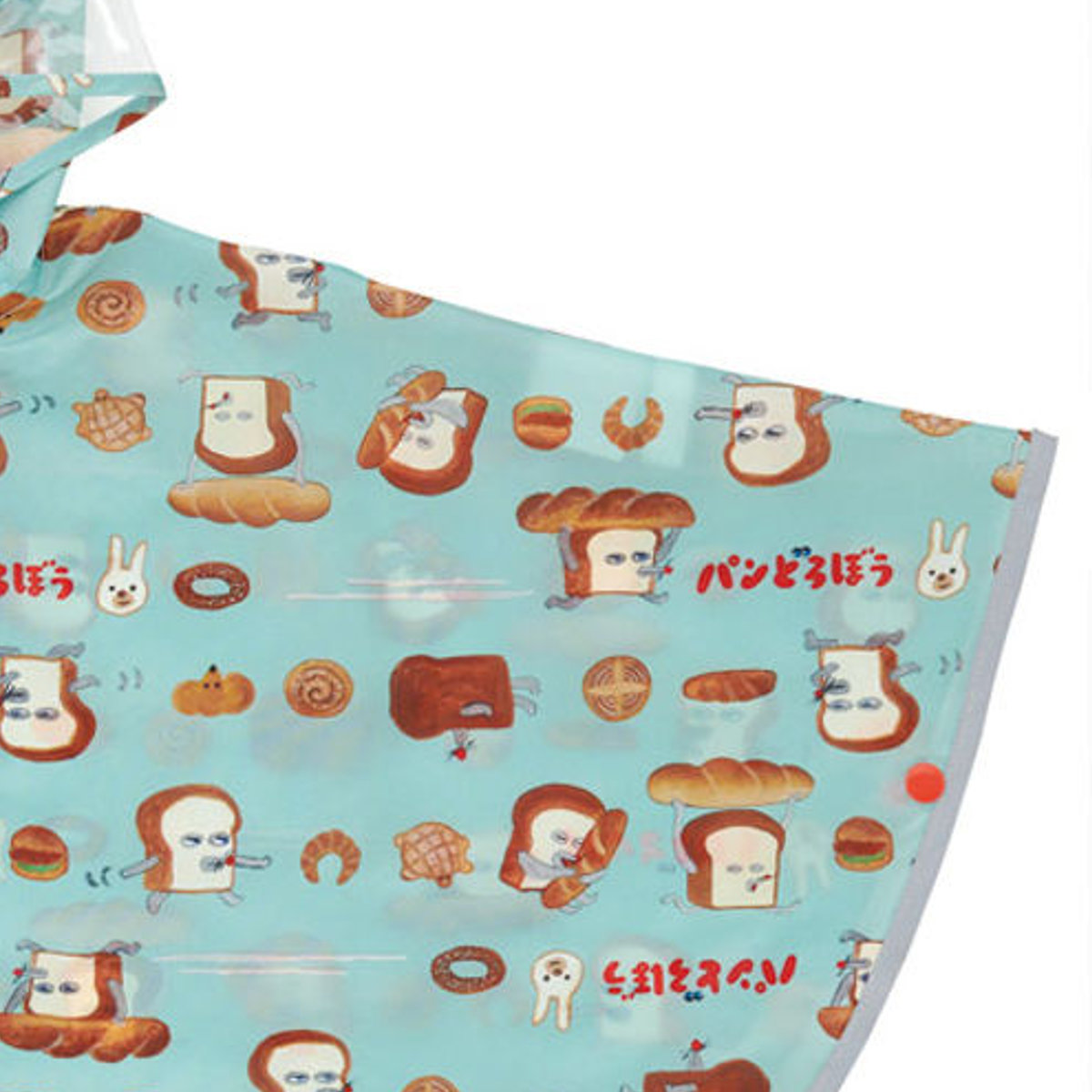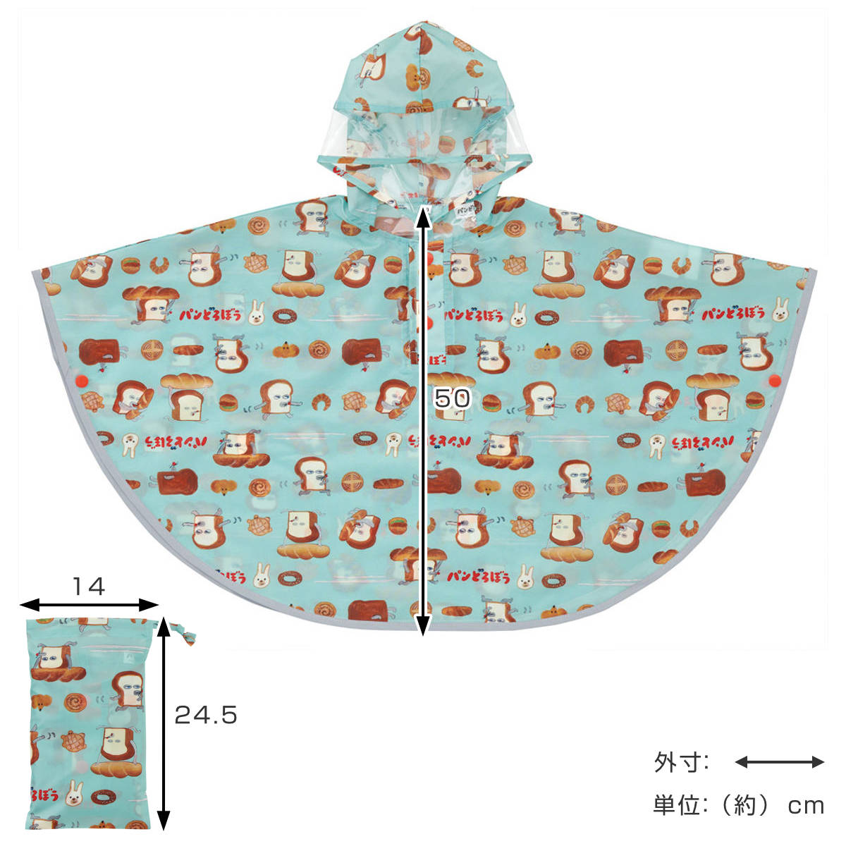 レインコート キッズ レインポンチョ 前開き 収納袋付き パンどろぼう ( 80cm~100cm 雨具 子供 レインウェア 雨合羽 合羽 かっぱ ランドセル対応 子ども 幼児 幼稚園 保育園 通園 男の子 女の子 かわいい )