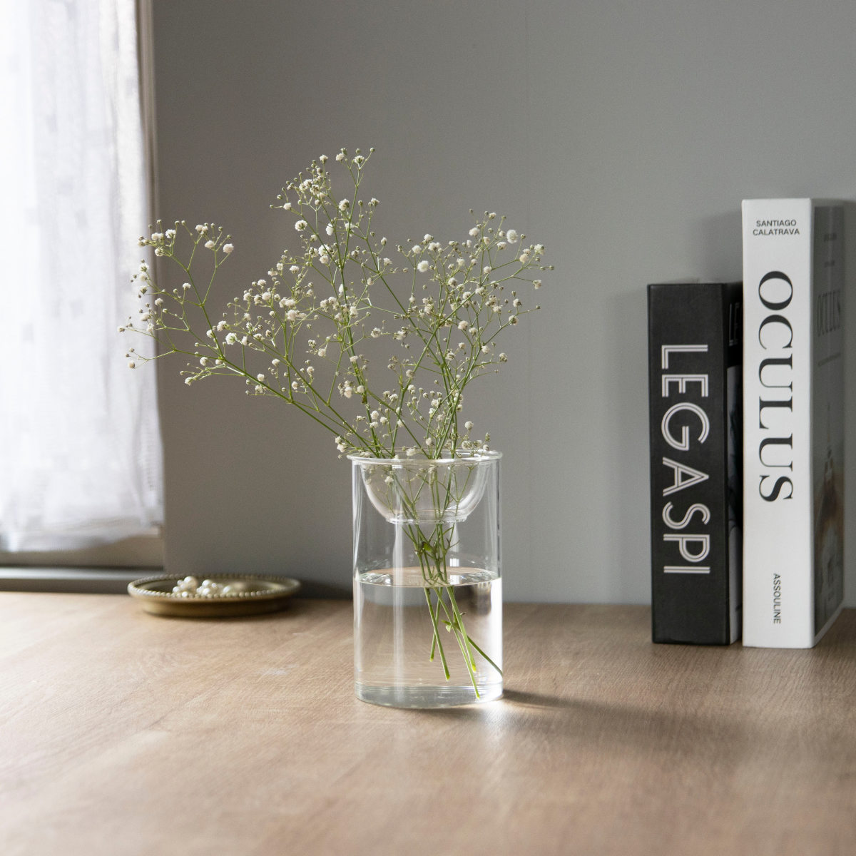 透明感のあるガラスとシンプルなフォルムはどんな空間にも溶け込みます。シリーズでサイズ違いや色違いをいくつか並べると統一感のある空間になります。