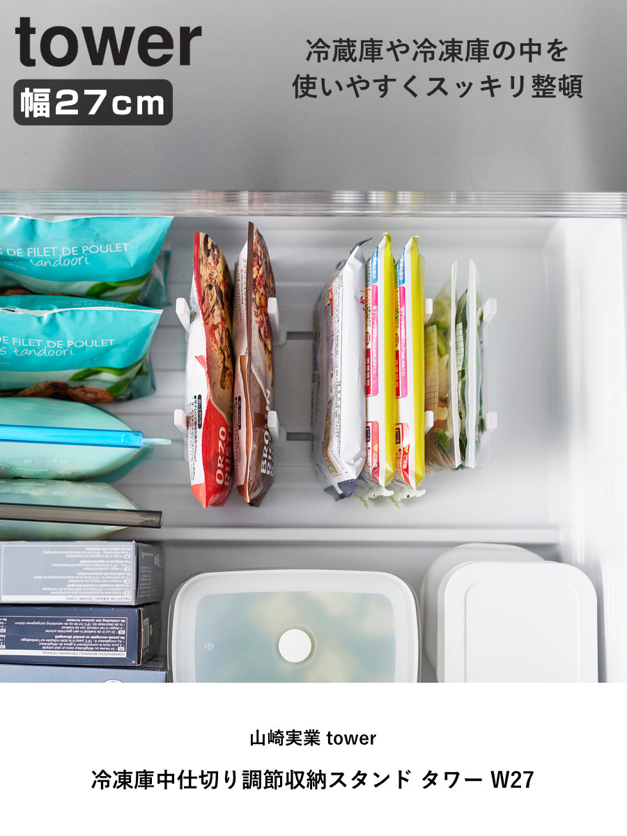 山崎実業 tower 冷凍庫中仕切り調節収納スタンド タワー W27 ( 4903208101028 タワーシリーズ 収納スタンド 冷凍庫 仕切り 調節可能 冷凍庫中 仕切りスタンド 収納 スタンド 冷蔵庫収納 冷凍庫用仕切り 冷凍庫収納 冷蔵庫 ) 【ホワイト】