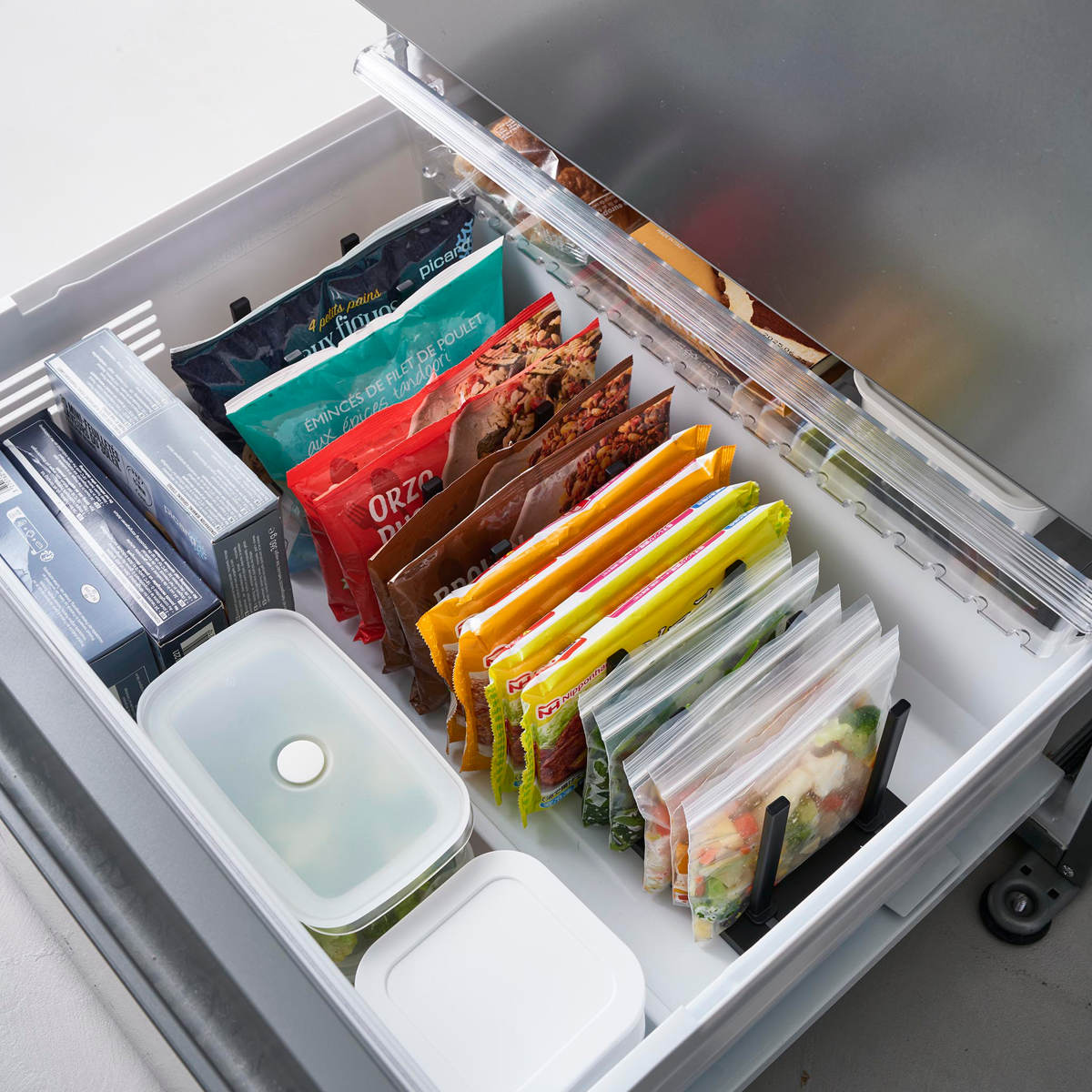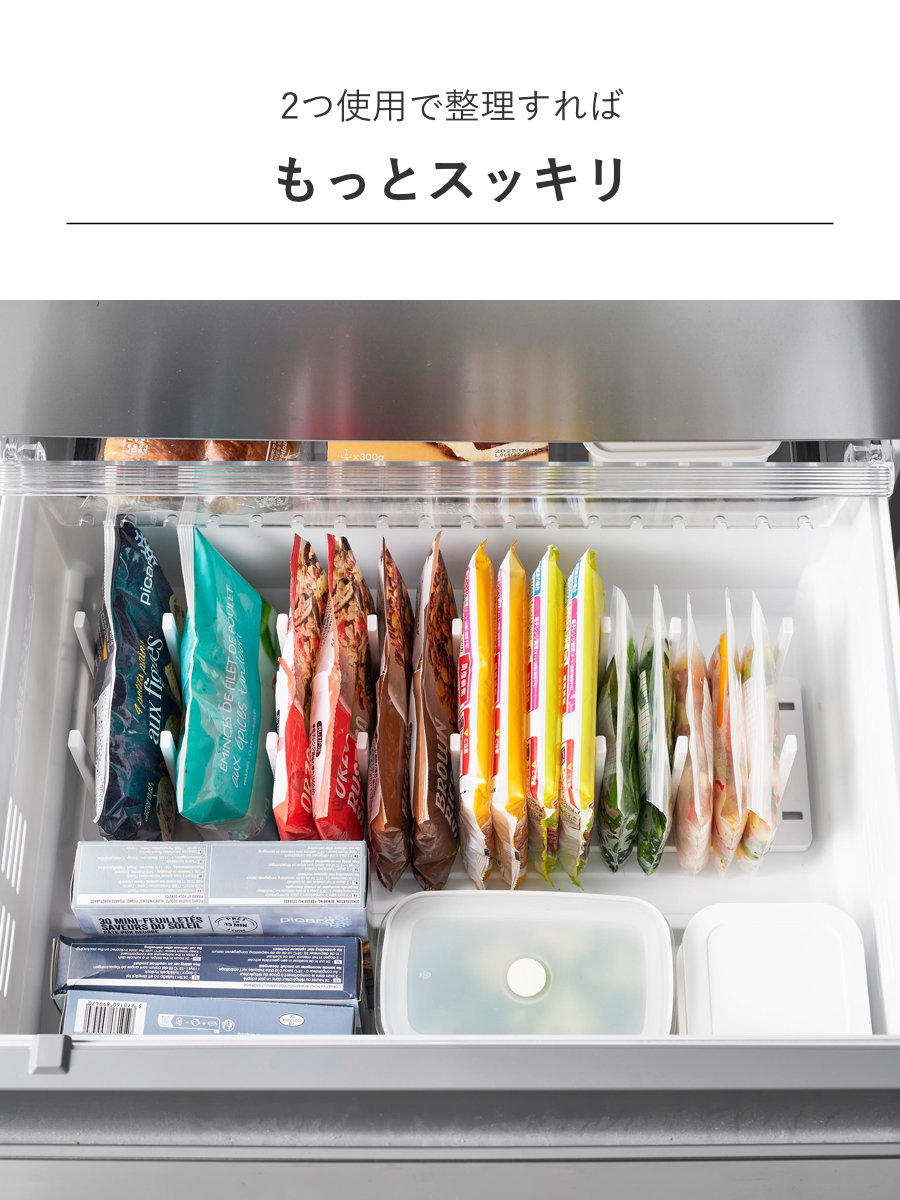 冷凍食品だけでなく、冷蔵庫中のペットボトルや缶類の収納にもお使いいただけます。スッキリと綺麗に整理できるのでセカンド冷凍庫への使用にもおすすめです。