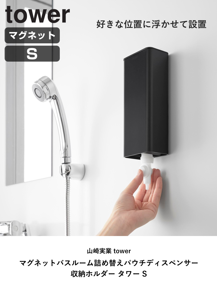 山崎実業 tower マグネットバスルーム詰め替えパウチディスペンサー収納ホルダー タワー S ( 4903208101394 タワーシリーズ 詰め替えパウチ ホルダー マグネット 磁石 バスルーム用 ディスペンサー収納 バスルーム ) 【ブラック】