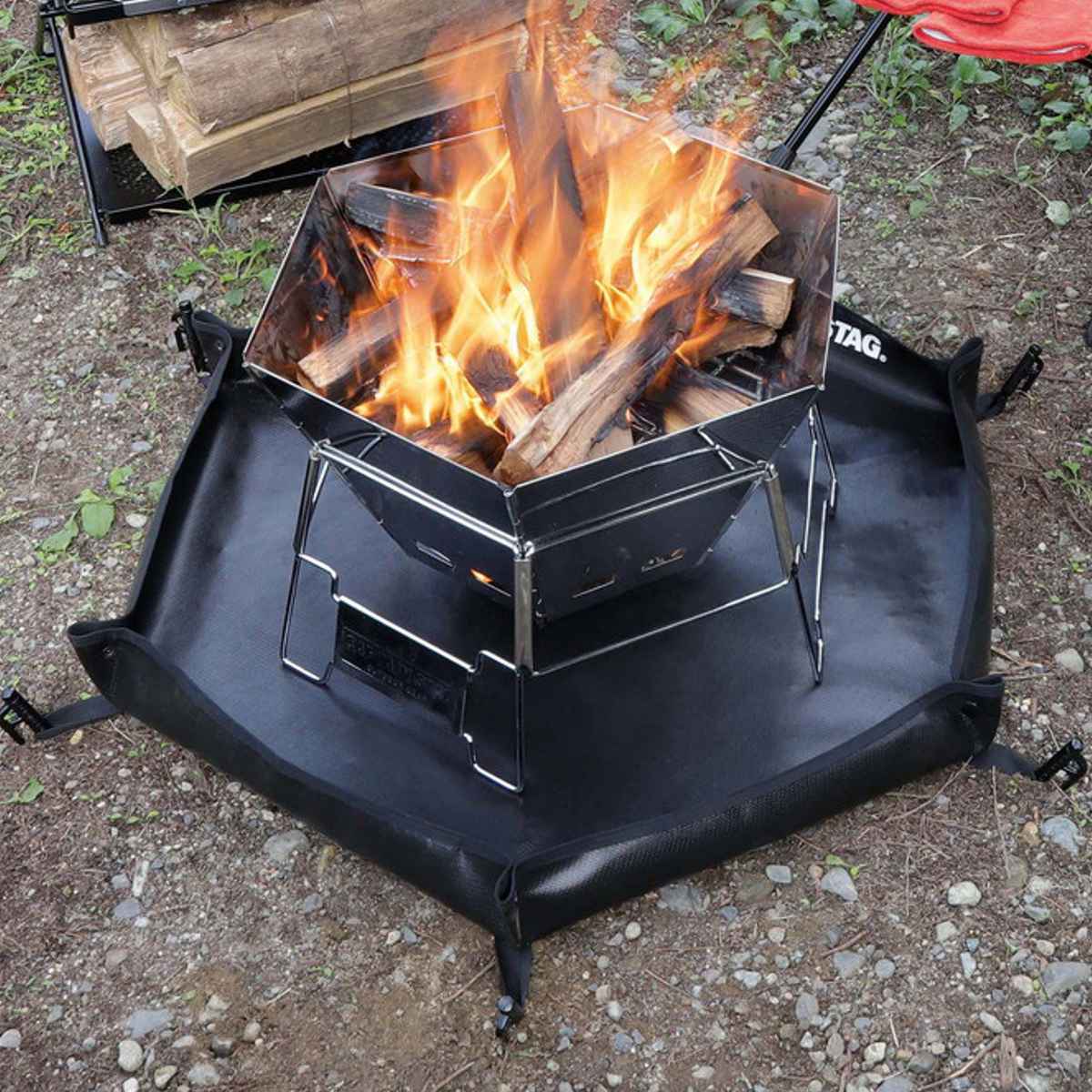 ●様々な形状の焚き火台と合わせやすい六角形のシートです。