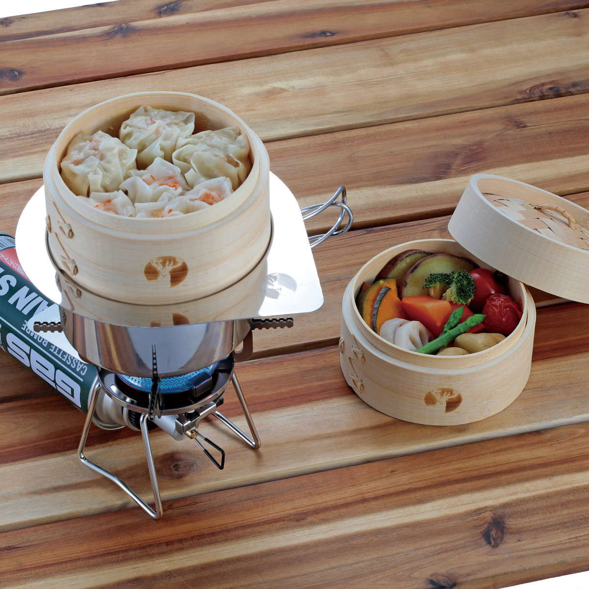 蒸気を閉じ込めて蒸し上げる、ふた付きの中華せいろセットです。アウトドアで本格せいろ料理が楽しめます。