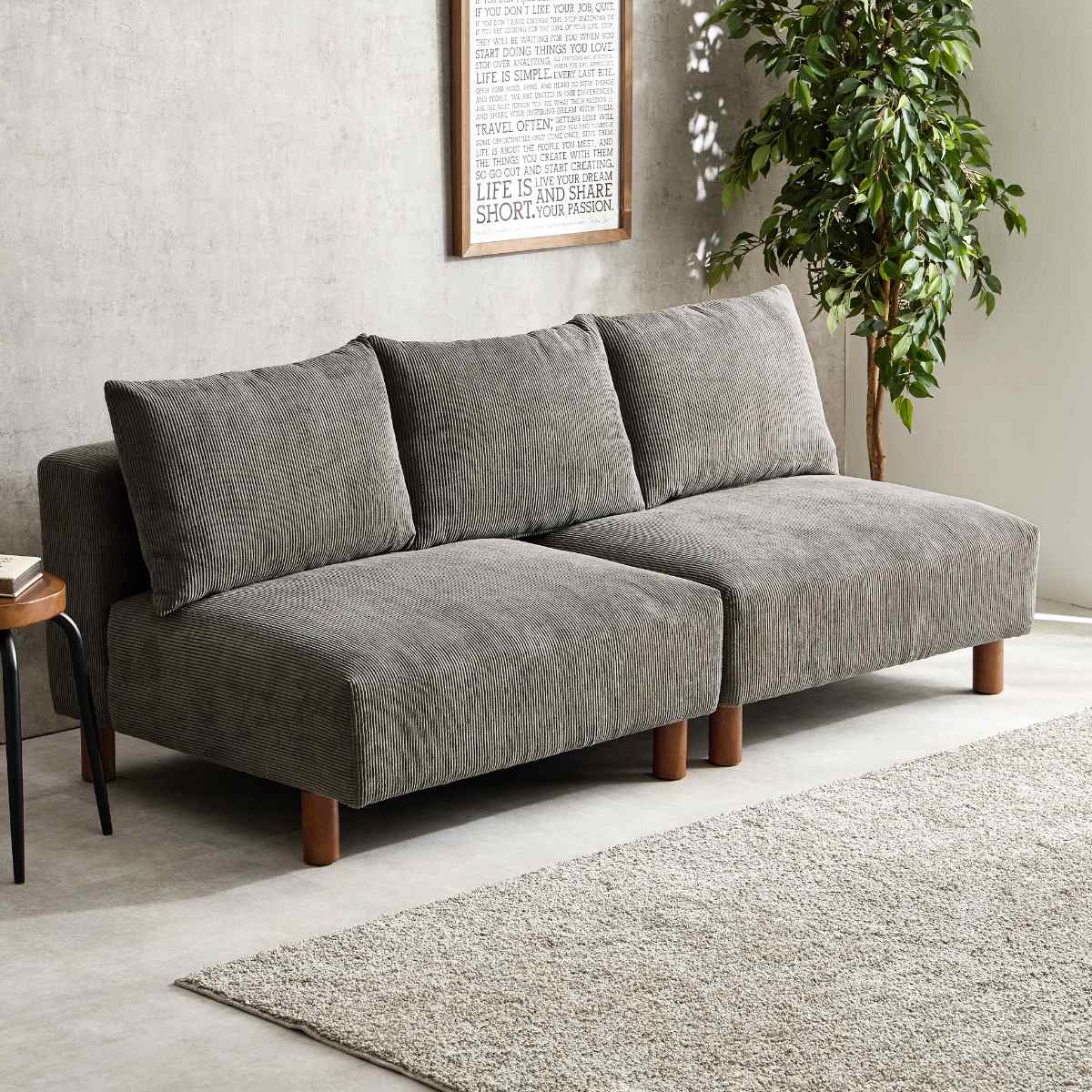 ソファ 2人掛け 幅180cm コーデュロイ生地 ゆったりソファ ( ソファー リビングソファ 座面広い 脚付き 脚 木製 天然木 取り外し クッション ローソファ セパレート ワイド アームレス フェザー入り フロアソファ おしゃれ ) 【ベージュ】のレビュー