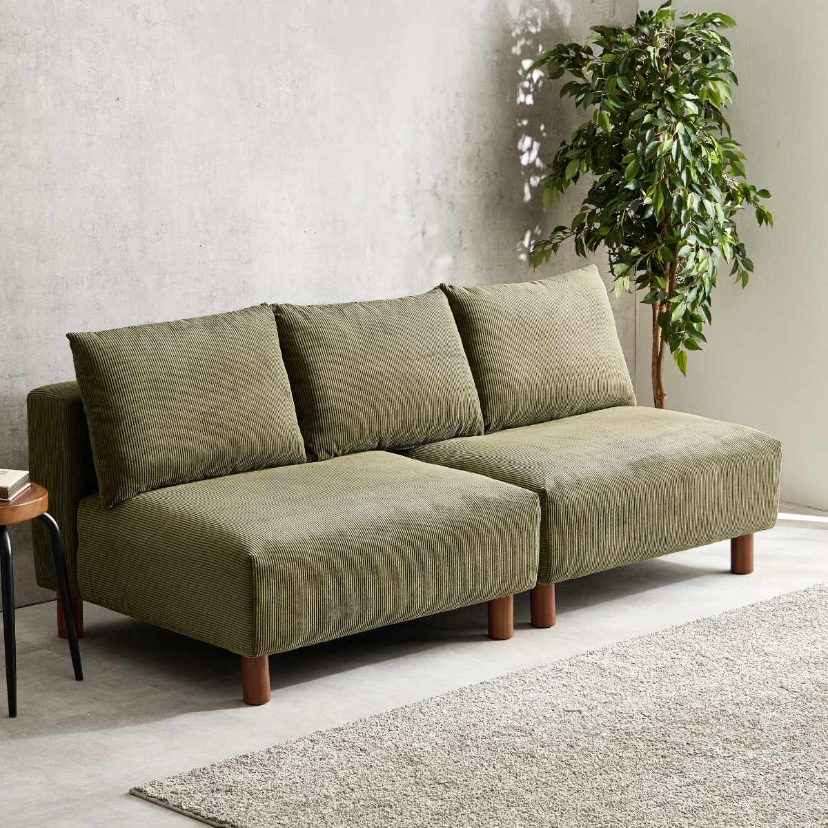 ソファ 2人掛け 幅180cm コーデュロイ生地 ゆったりソファ ( ソファー リビングソファ 座面広い 脚付き 脚 木製 天然木 取り外し クッション ローソファ セパレート ワイド アームレス フェザー入り フロアソファ おしゃれ ) 【ベージュ】