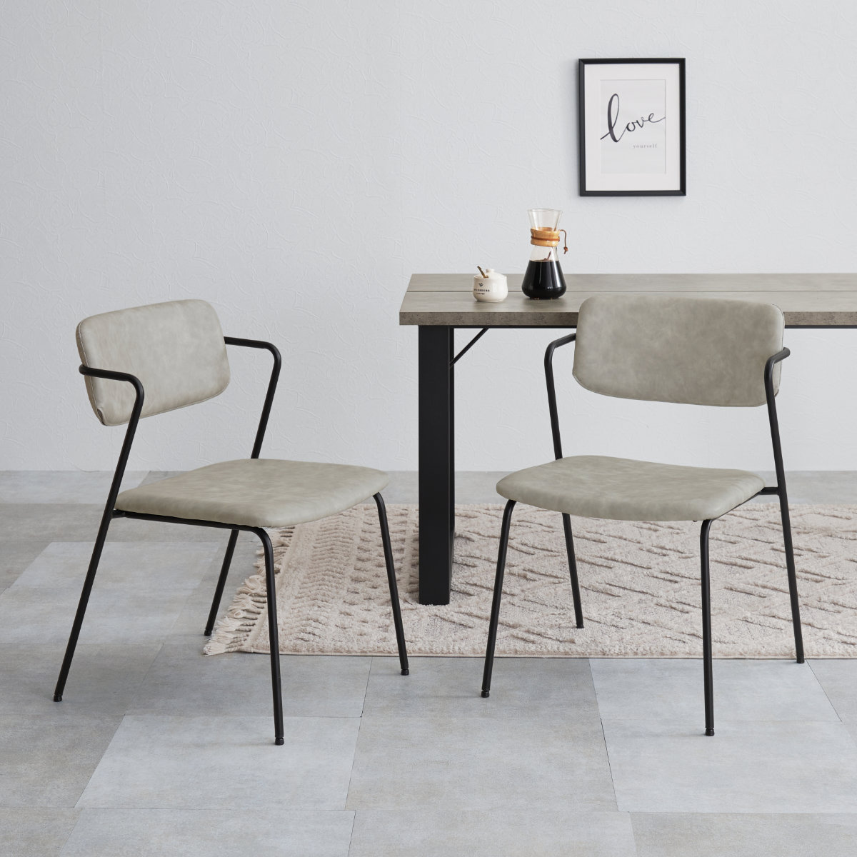 チェアのフレーム部分はキズや水に強い粉体塗装を採用しています。スタイリッシュなシルエットながら長くご愛用いただけます。