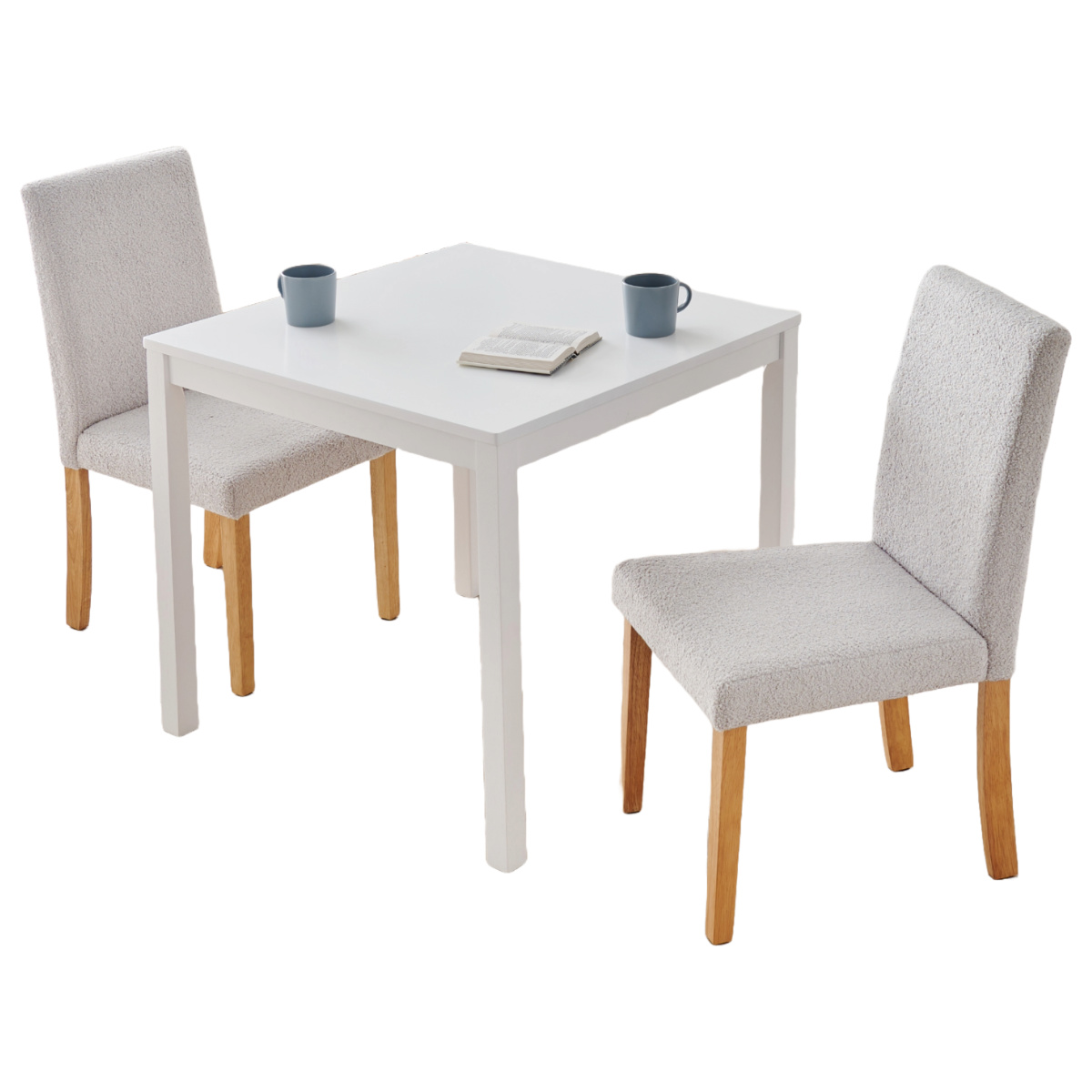 ダイニングテーブルセット 2人掛け 3点セット テーブル幅75cm チェア×2 ブークレ生地タイプ ( ダイニングセット 2人用 コンパクト 食卓テーブル 椅子 ハイバック ファブリック イス ダイニングテーブル ダイニングチェア 木製 ) 【ホワイト×グレー】