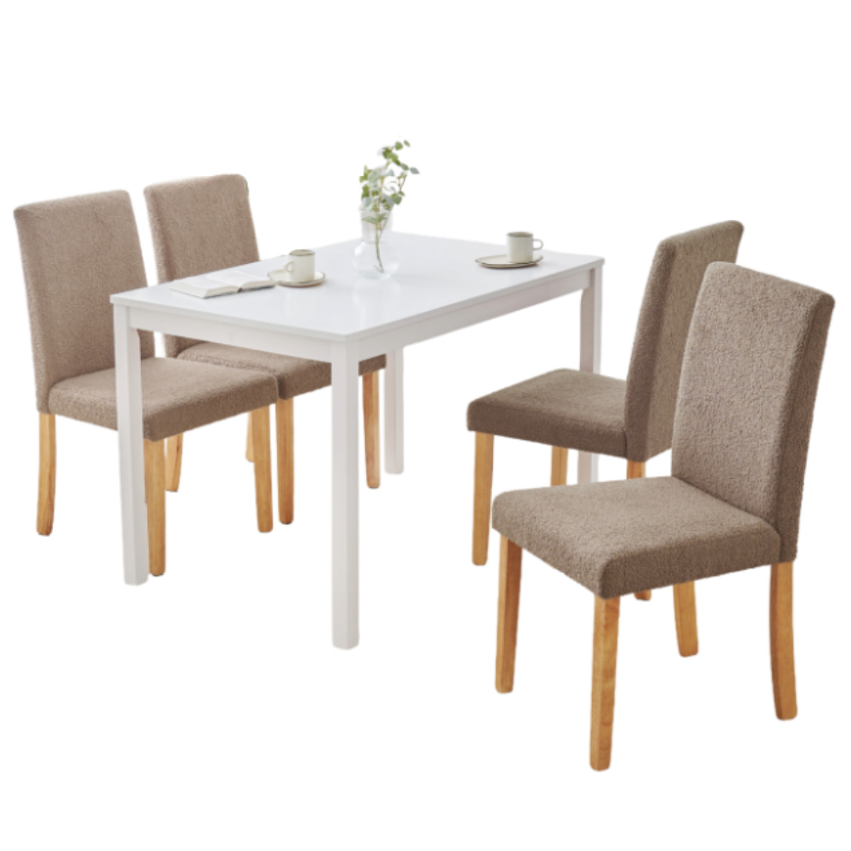 ダイニングテーブルセット 4人掛け 5点セット テーブル幅110cm チェア×4 ベーシック生地タイプ ( ダイニングセット 食卓テーブル 椅子 チェア テーブル 4人用 ダイニングテーブル ダイニングチェア イス ハイバック ) 【ホワイト×ブラウン】