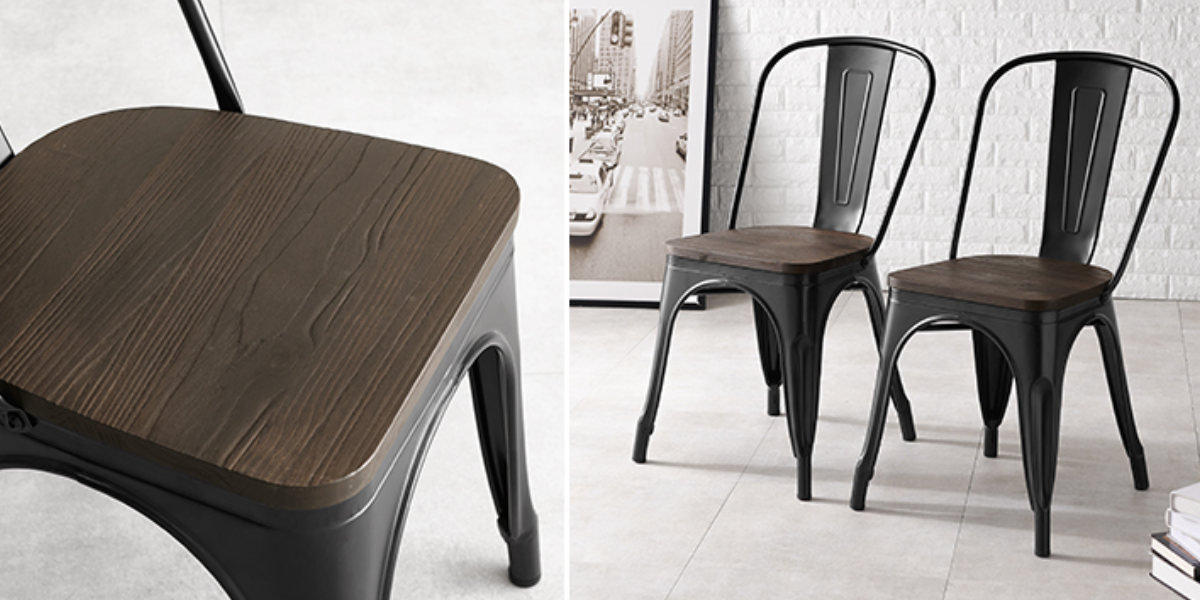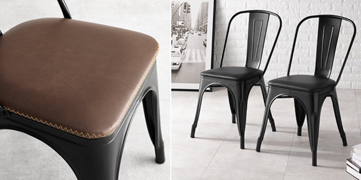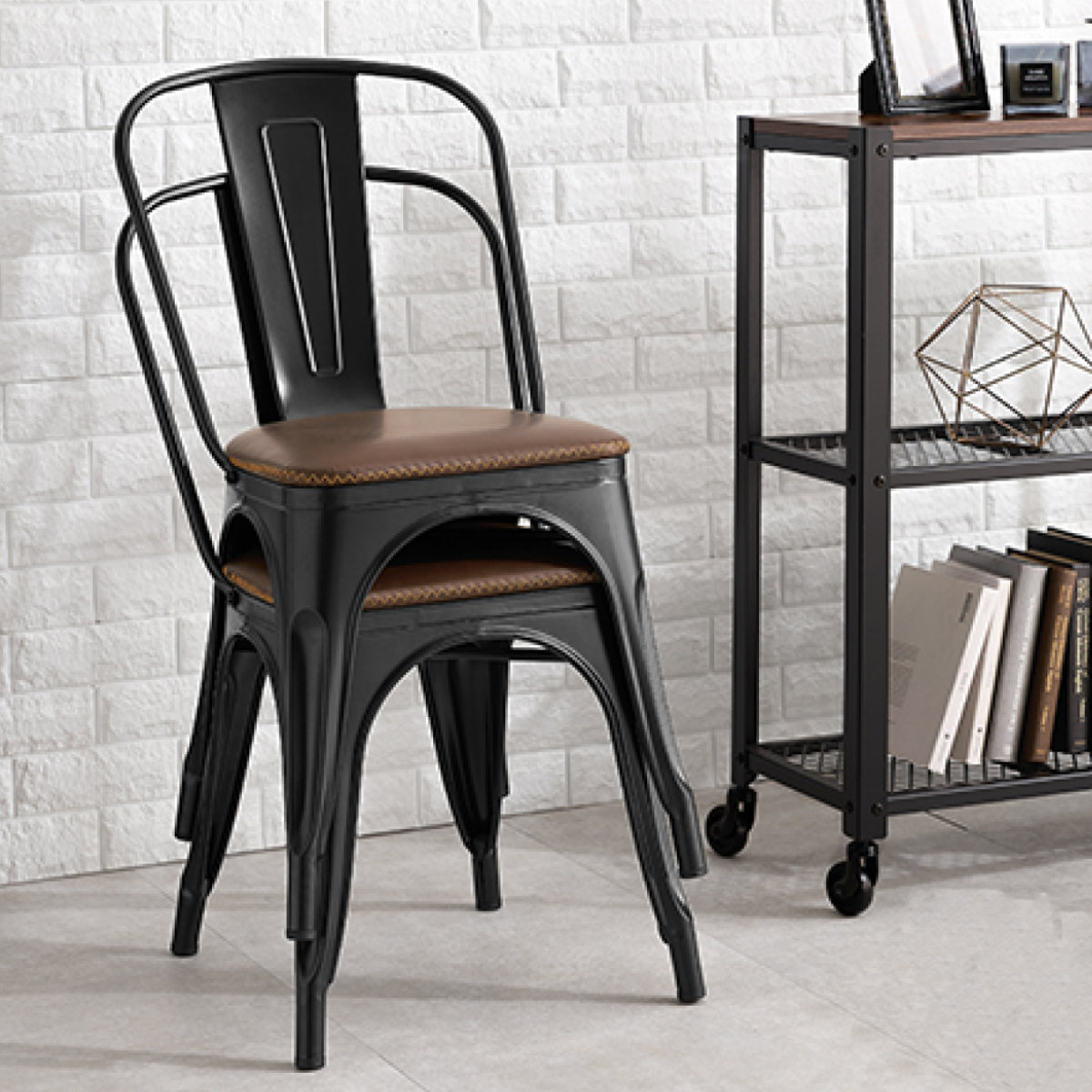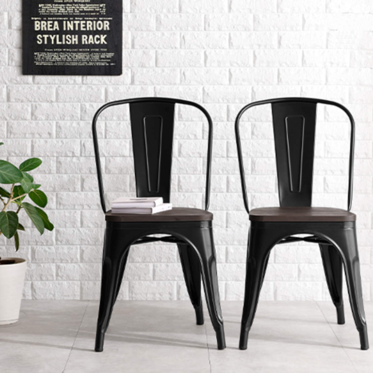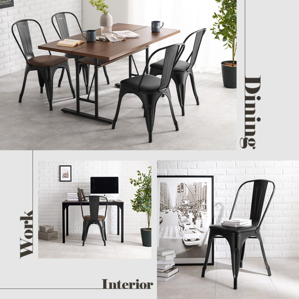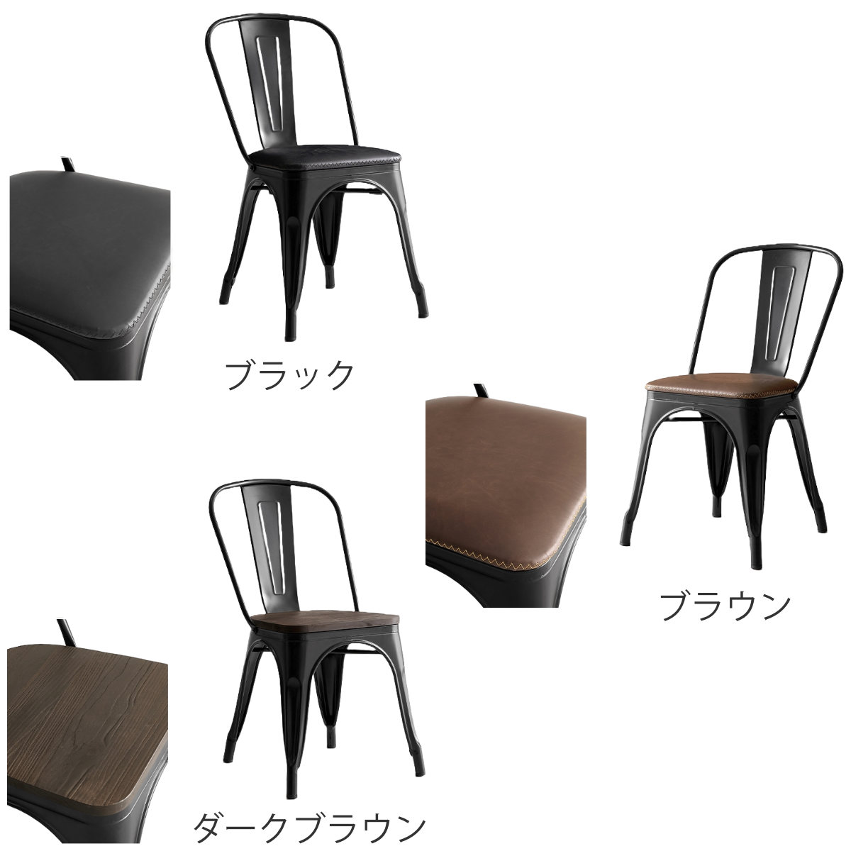 ダイニングチェア 同色2脚セット 座面高44.5cm 45.5cm ウッドタイプ 本革調タイプ ( 食卓椅子 チェア ダイニング イス スチール 木製 レザー調 アームレス 積み重ね リビング 椅子 おしゃれ ダイニングチェアー リビングチェア ) 【ブラック】