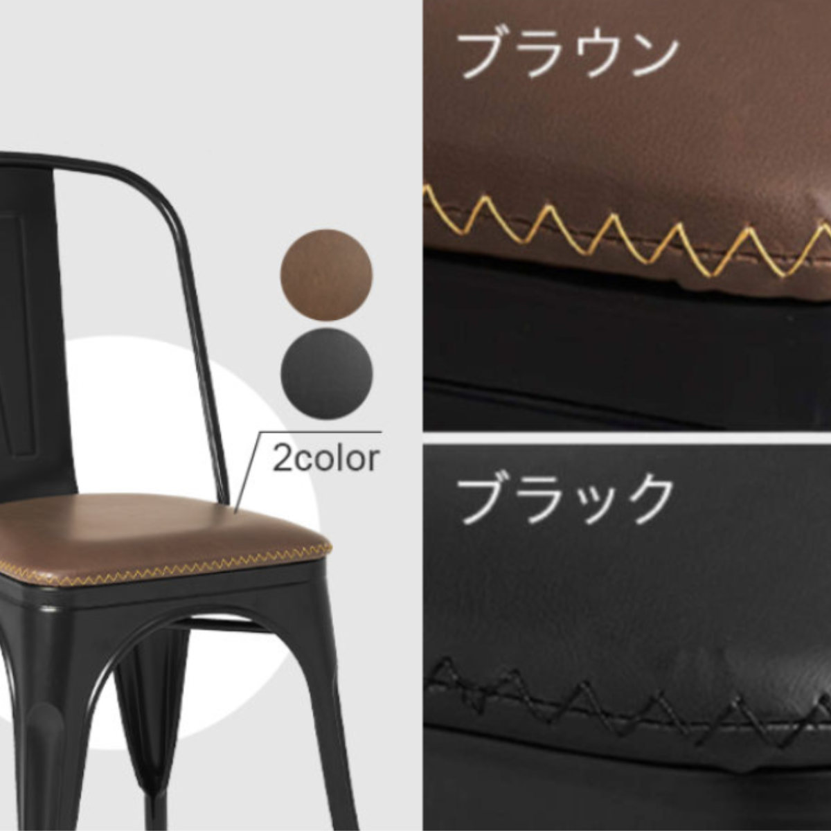 開放感のあるスチールフレームに、異素材の座面を組み合わせたインダストリアルなチェアです。レザー調の合成皮革はスタイリッシュな印象に、天然木(エルム材)は温もりのある雰囲気に仕上げます。インテリアのテイストやお好みに合わせてお選びいただけます。