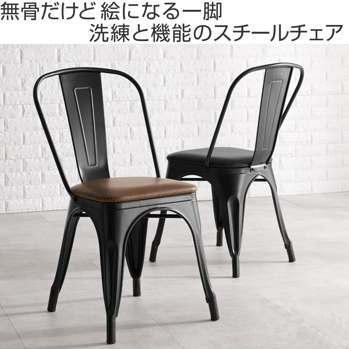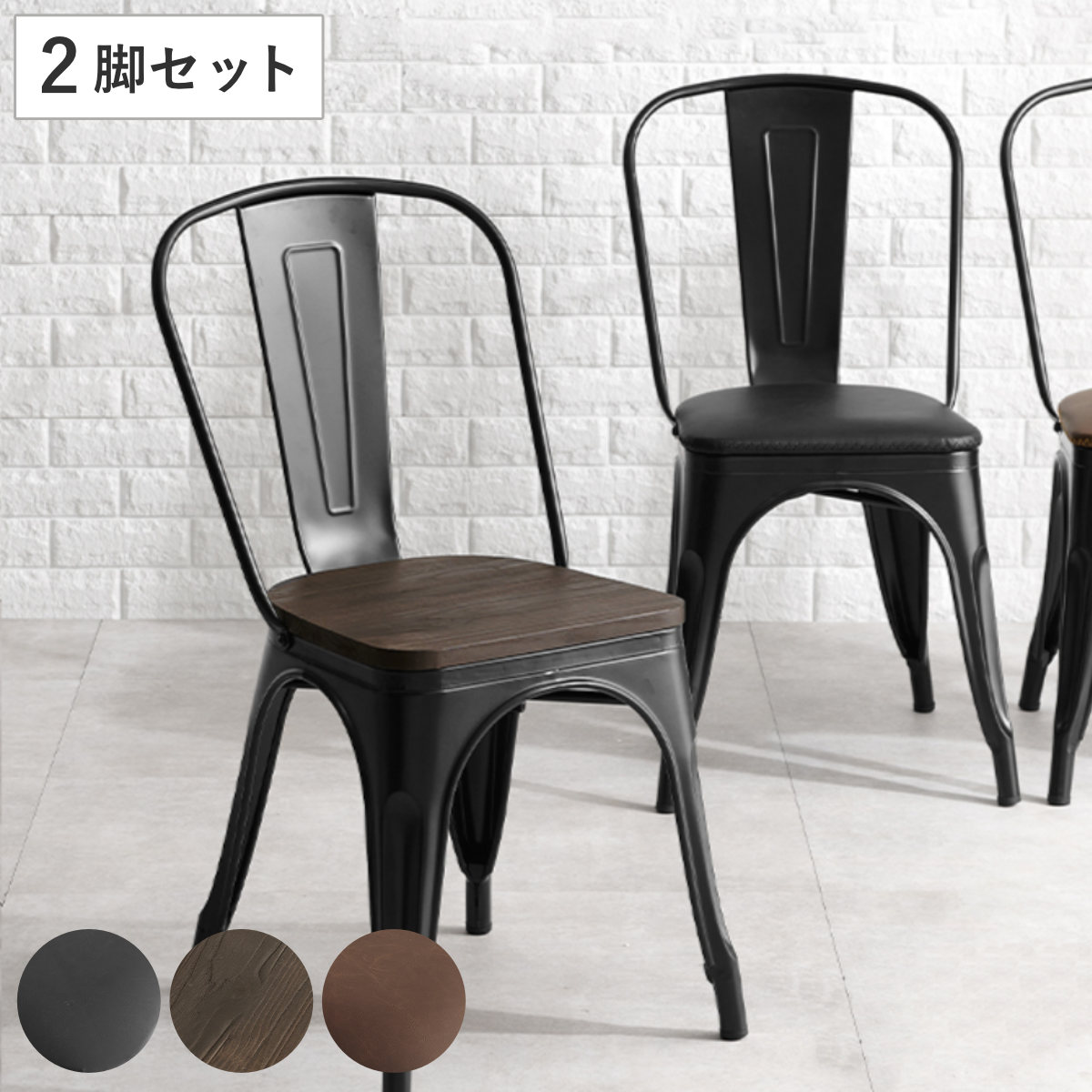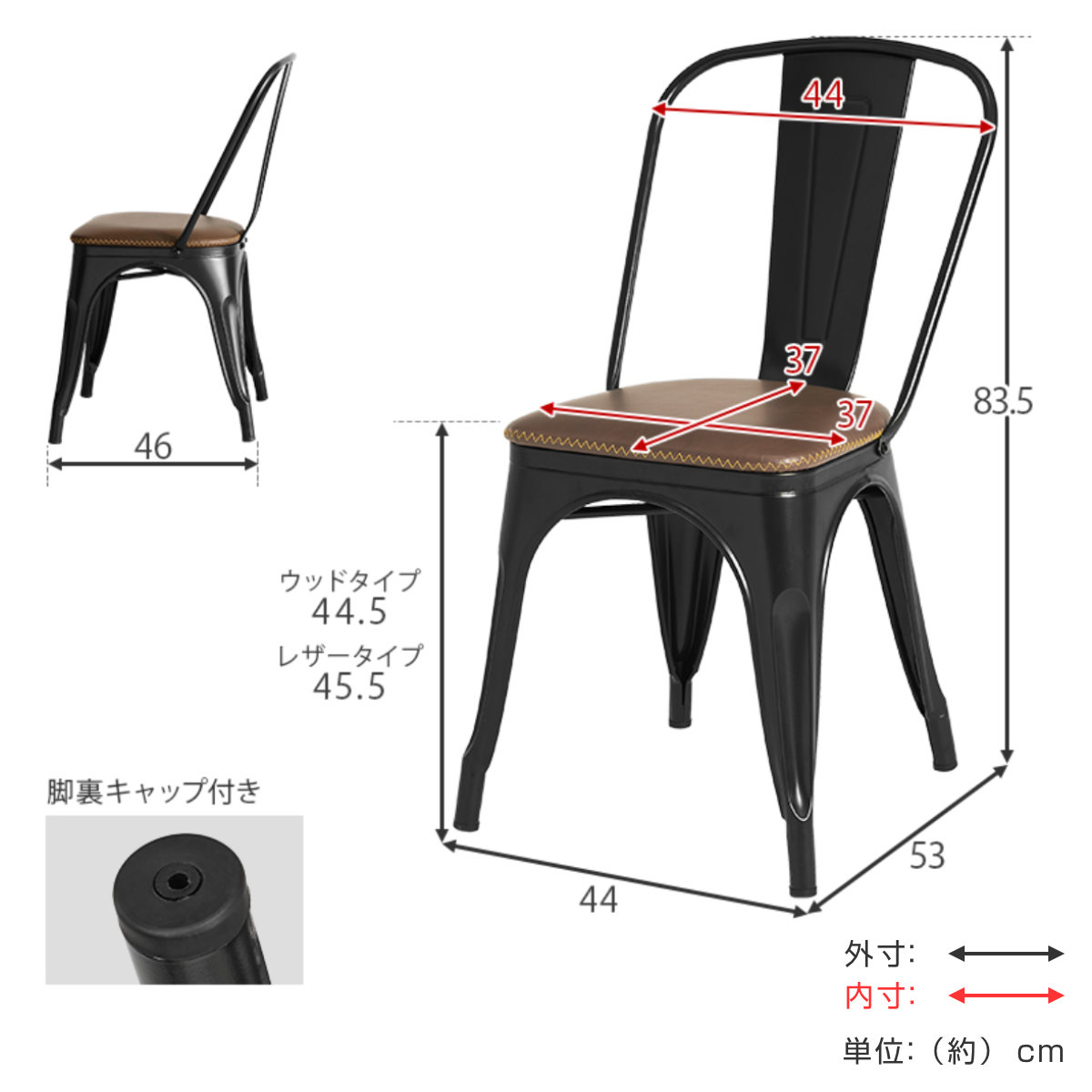 ダイニングチェア 同色2脚セット 座面高44.5cm 45.5cm ウッドタイプ 本革調タイプ ( 食卓椅子 チェア ダイニング イス スチール 木製 レザー調 アームレス 積み重ね リビング 椅子 おしゃれ ダイニングチェアー リビングチェア ) 【ダークブラウン】