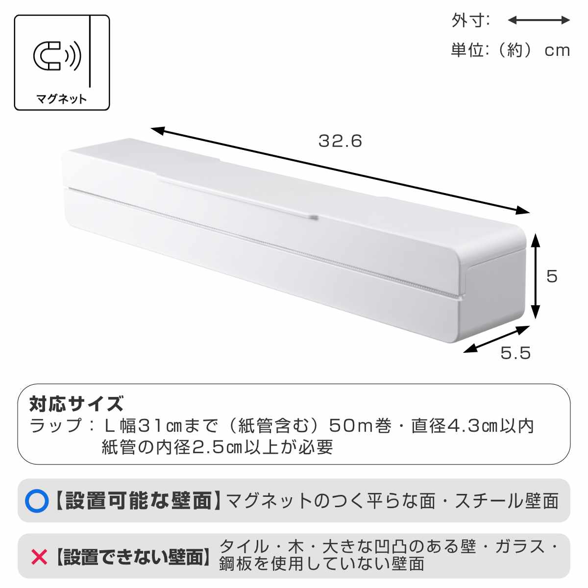 | 対応サイズ | ラップ:L幅31cmまで(紙管含む)50m巻・直径4.3cm以内 紙管の内径2.5cm以上が必要 |