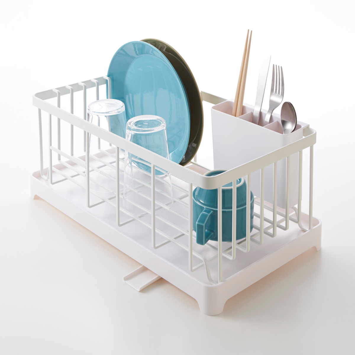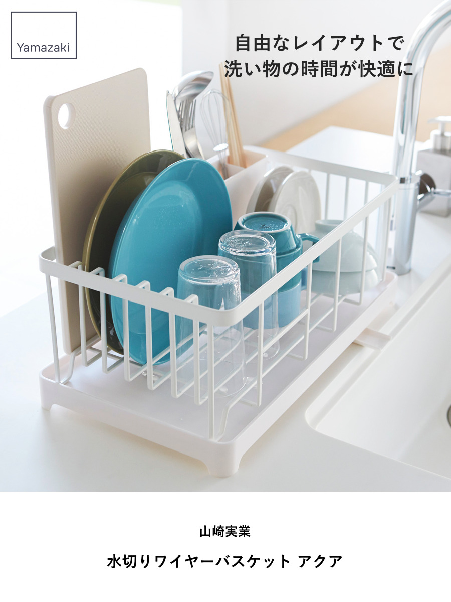 山崎実業 AQUA 水切りワイヤーバスケット アクア ( 4903208028981 アクアシリーズ 水切り ワイヤーバスケット 水切りかご 水切りラック 水切りバスケット 水切りカゴ カトラリーポケット付き 自動排水 食器 キッチン 収納 皿 乾燥 )