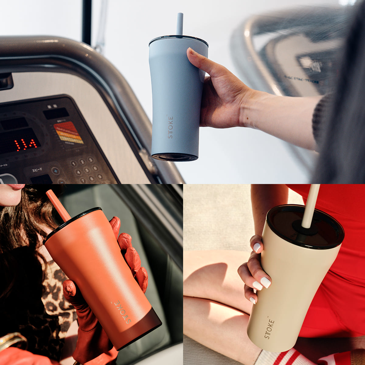 STTOKE ストーク ストロータンブラー 20oz 590ml ( ストロー 保温 保冷 蓋付き 真空構造 完全密封 こぼれない おしゃれ 溢れない 真空断熱 水筒 コーヒー スポドリ 炭酸 OK 広口形状 滑り止め ) 【ボンダイブルー】