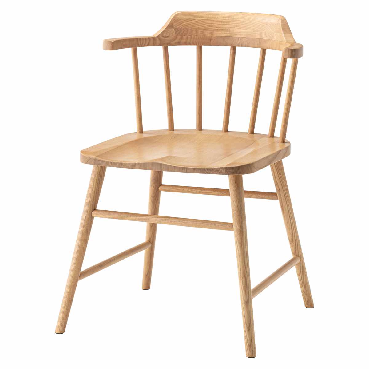 古くから愛されるイギリス発祥のウィンザーチェアです。厚めの座板、細長いスポーク、背板の3つを直接接合した形と、ハの字に広がった脚の伝統的なフォルムで、お部屋のアクセントとしても活躍します。