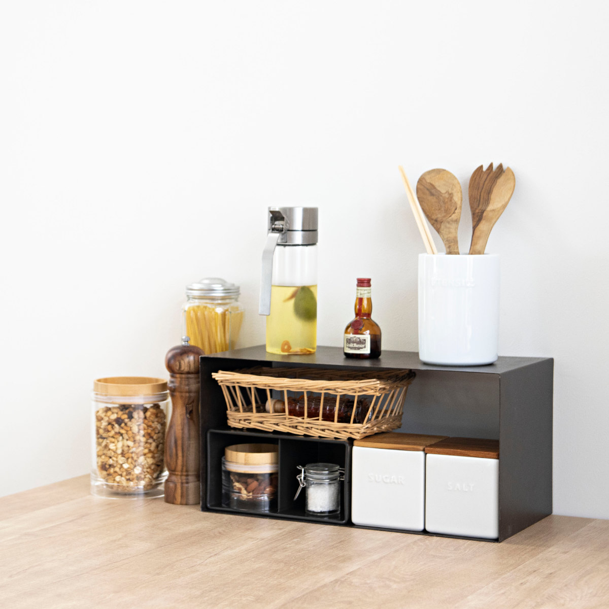 花瓶をひとつ置くだけでも立体感が生まれ、空間にメリハリが生まれます。スパイスラックや収納としても活躍します。インテリアに調和しながら、暮らしに機能をプラスする一品です。