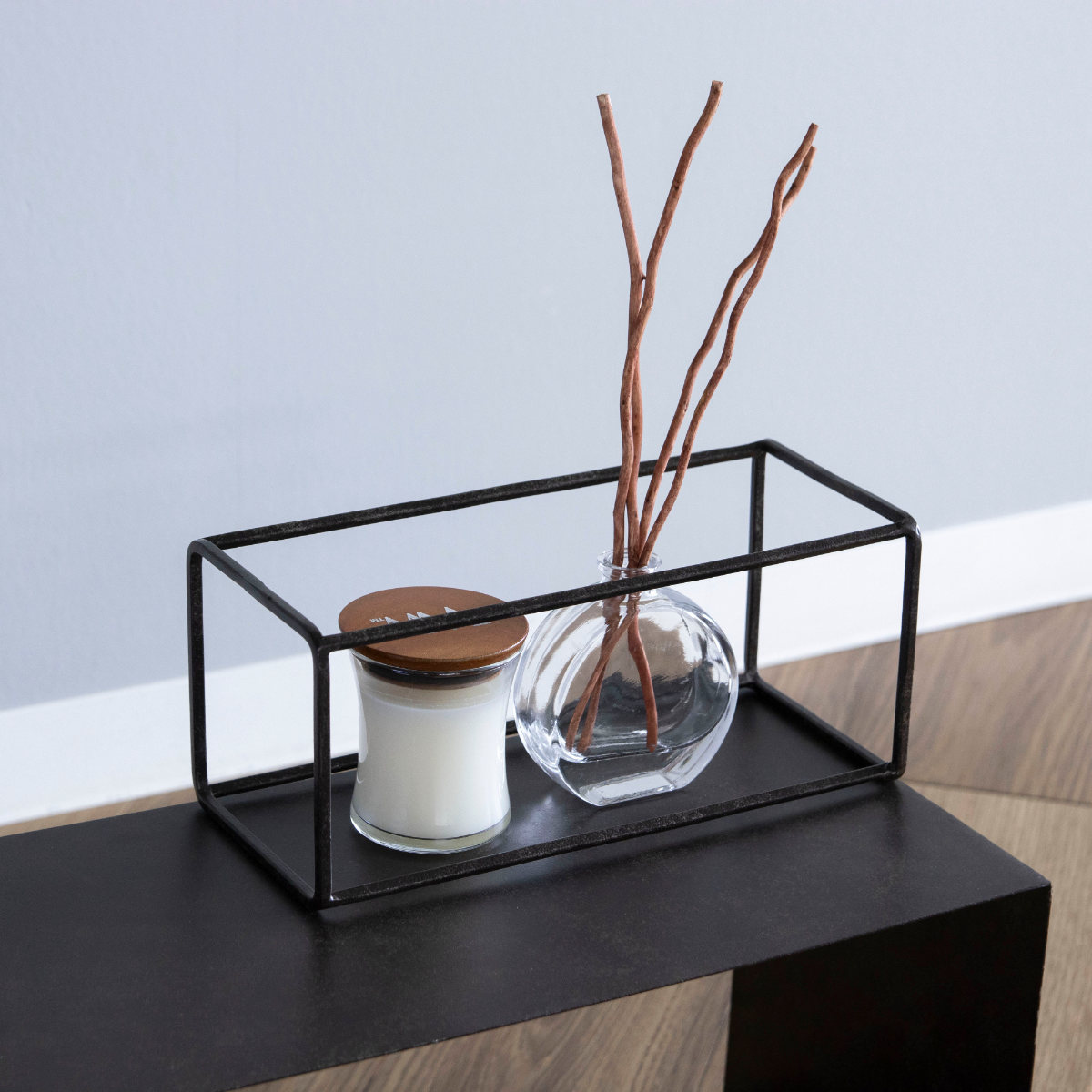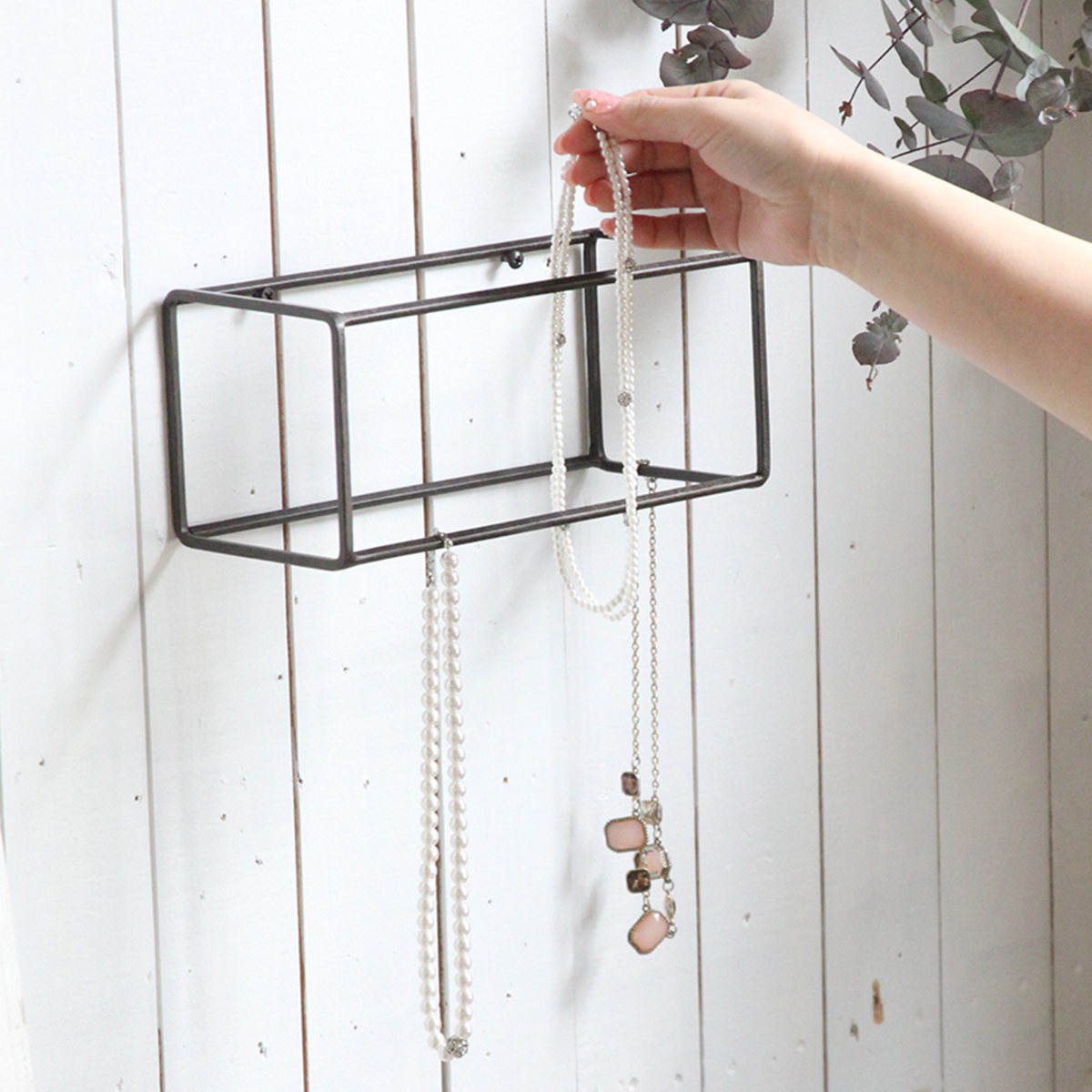 花瓶をひとつ置くだけでも立体感が生まれ、空間にメリハリが生まれます。フレームを利用して、アクセサリーの引っ掛け収納としても活躍します。インテリアに調和しながら、暮らしに機能をプラスする一品です。