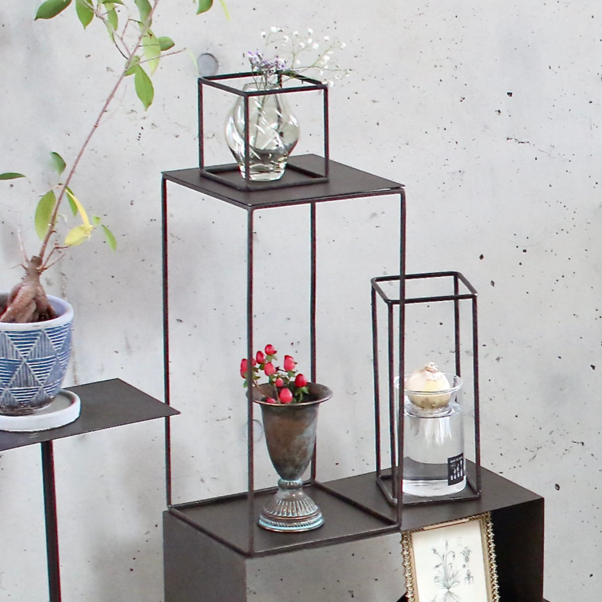 フレーム ジョセフアイアン ディスプレイワイヤーフレーム レクタングル Sサイズ ( ディスプレイ 棚 フラワーラック 飾り台 アイアンフレーム 室内 飾る 台 置く 植物 観葉植物 花 園芸 収納棚 小物収納 インテリア )