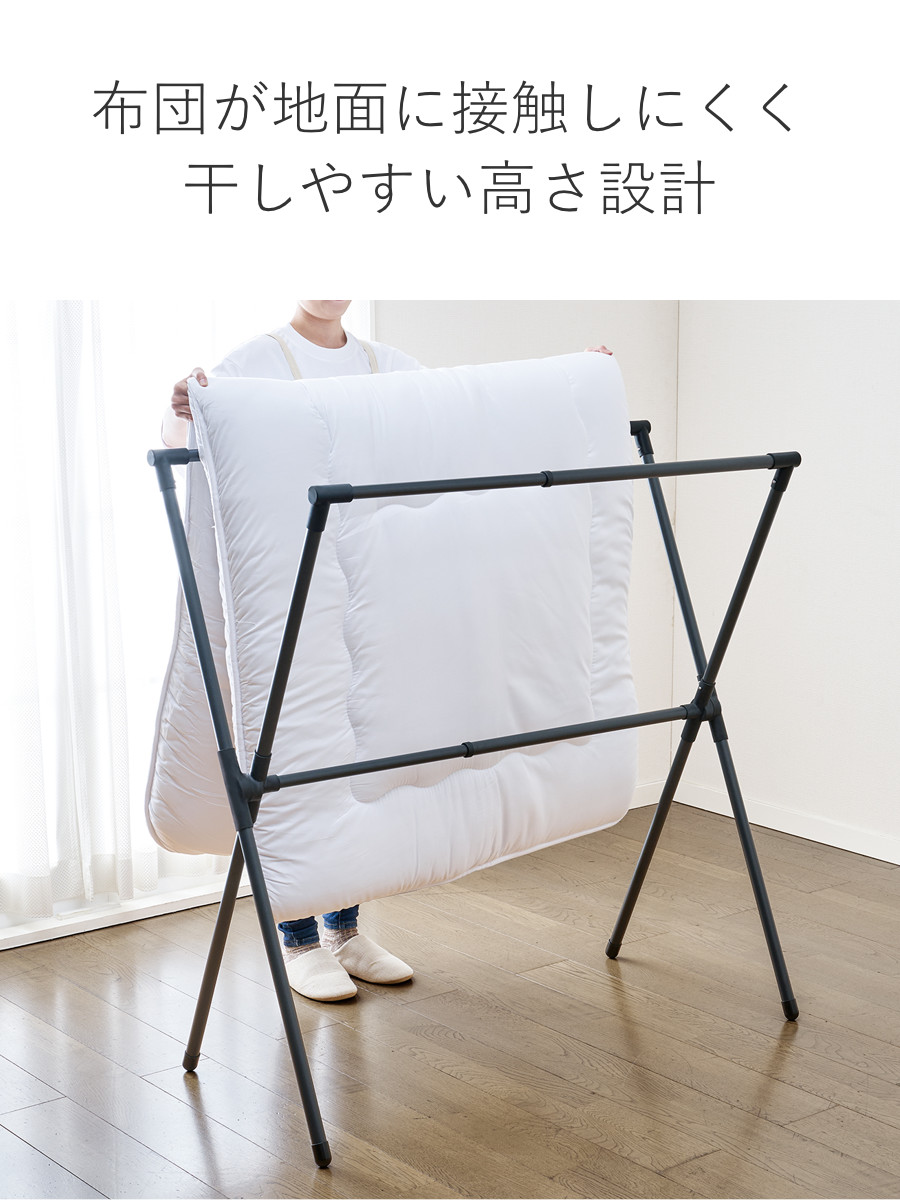 腰を屈んだり、無理に背伸びすることのない干しやすい高さに設計されています。布団を干しても地面に接触しにくい高さで安心です。
