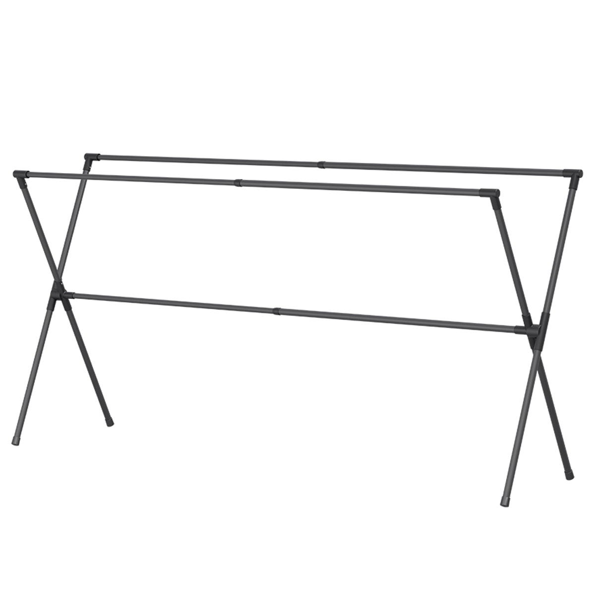 マットブラックの洗練されたデザインが空間に映える、X型の物干しです。指紋やホコリが目立ちにくいため使いやすく、見た目と実用性を兼ね備えた1台です。