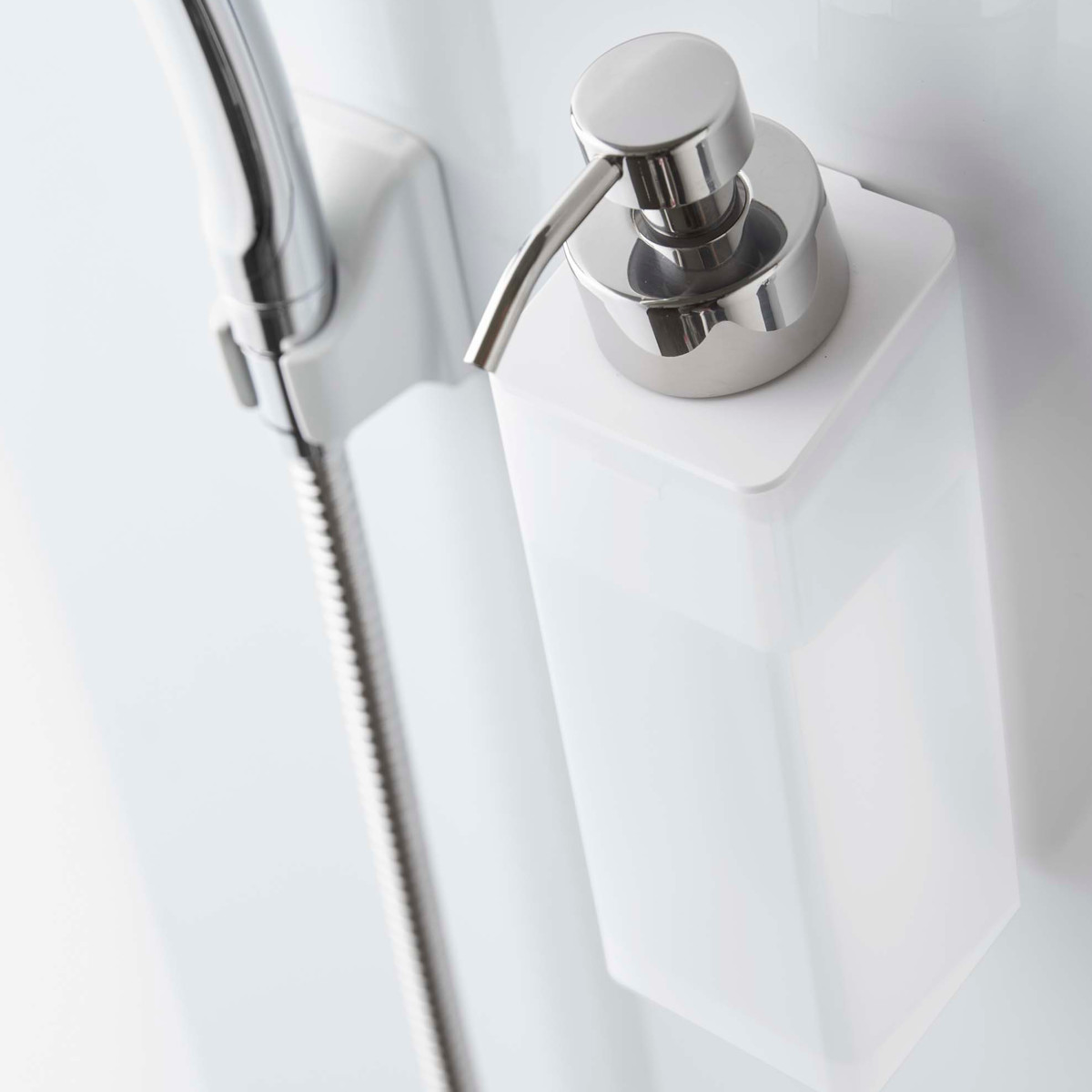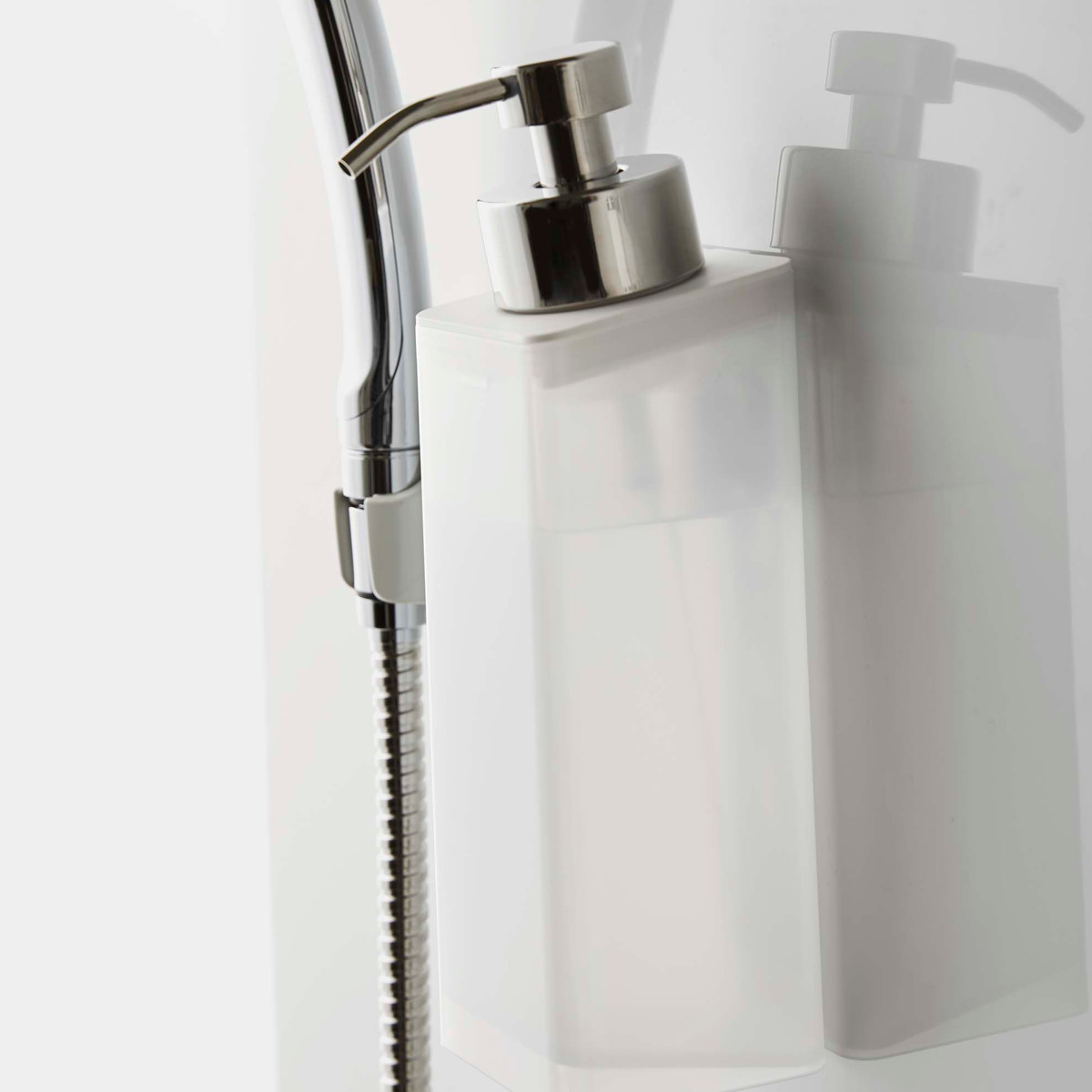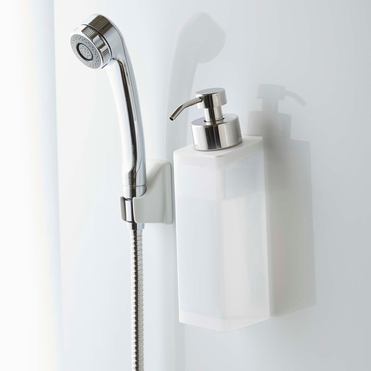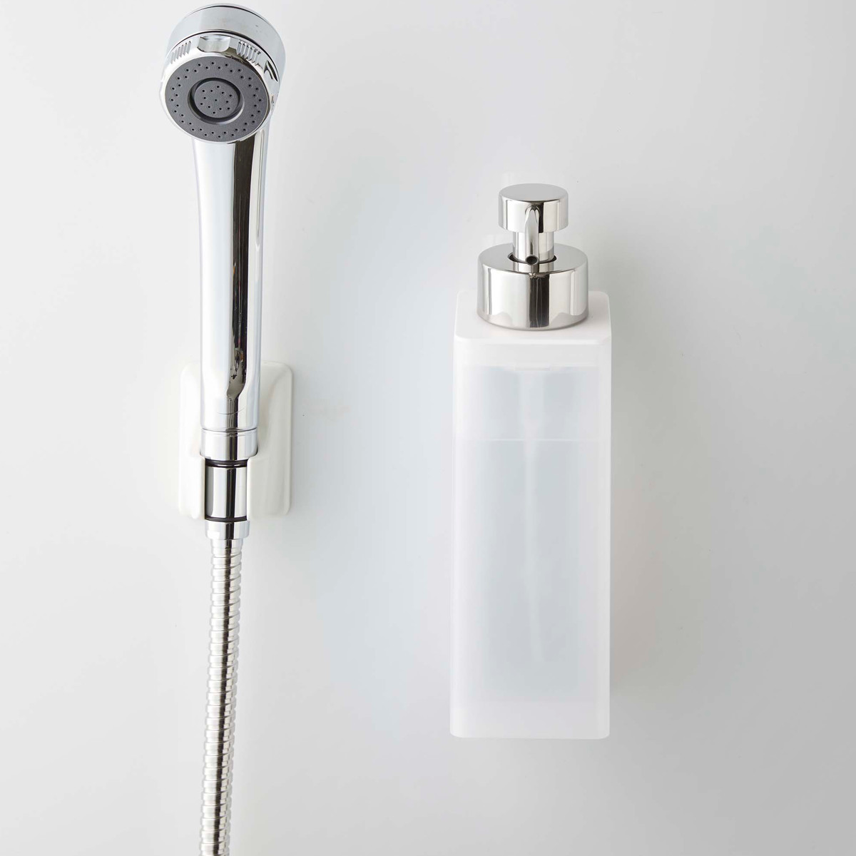 浴室壁面につけたまま、泡を出せる泡タイプ専用ディスペンサーです。泡で出てくるタイプの洗顔ソープやボディーソープにお使いいただけます。上部が斜めになっているので、壁面に付けたままでもポンプが押しやすい仕様です。