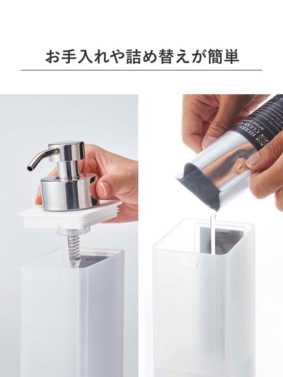 関連キーワード:yamazaki mistシリーズ 山実 YAMAZAKI 山崎 やまじつ 白 ホワイト 無地 スタイリッシュ シンプル シャンプーボトル ディスペンサーボトル 袋ごと 詰め替え ボトル ポンプボトル 詰替え容器 浮かせる収納 浮かせて収納 ヌメリ防止 ぬめり防止 バス用品 バスグッズ 風呂用品 お風呂用品 風呂グッズ お風呂グッズ バスアイテム おしゃれ お洒落 オススメ 便利 役立つ ソープポンプ 詰め替え容器 コンディショナー 衛生 入浴 浴室 シャンプー ハンドソープ ボディソープ 5212