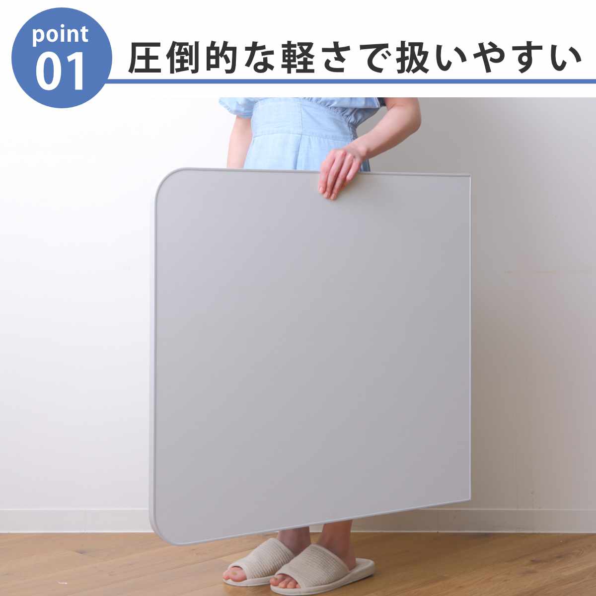 軽さを追求した新複合素材で従来のアルミ製の風呂ふたと比べて約30%軽量化しました。毎日使うものだからこそ軽さにこだわり、日々の開閉はもちろん、お掃除の際の移動もラクに行えます。女性やお子さまにも優しい軽さ、大きさです。