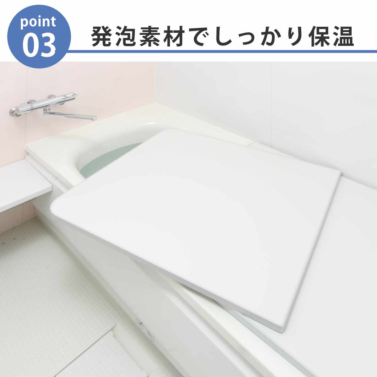厚みのある風呂ふたの中は、保温力のある発砲素材で温かさをしっかりキープします。光熱費の節約にもつながり、帰りの遅い家族がいるご家庭などにもおすすめです。