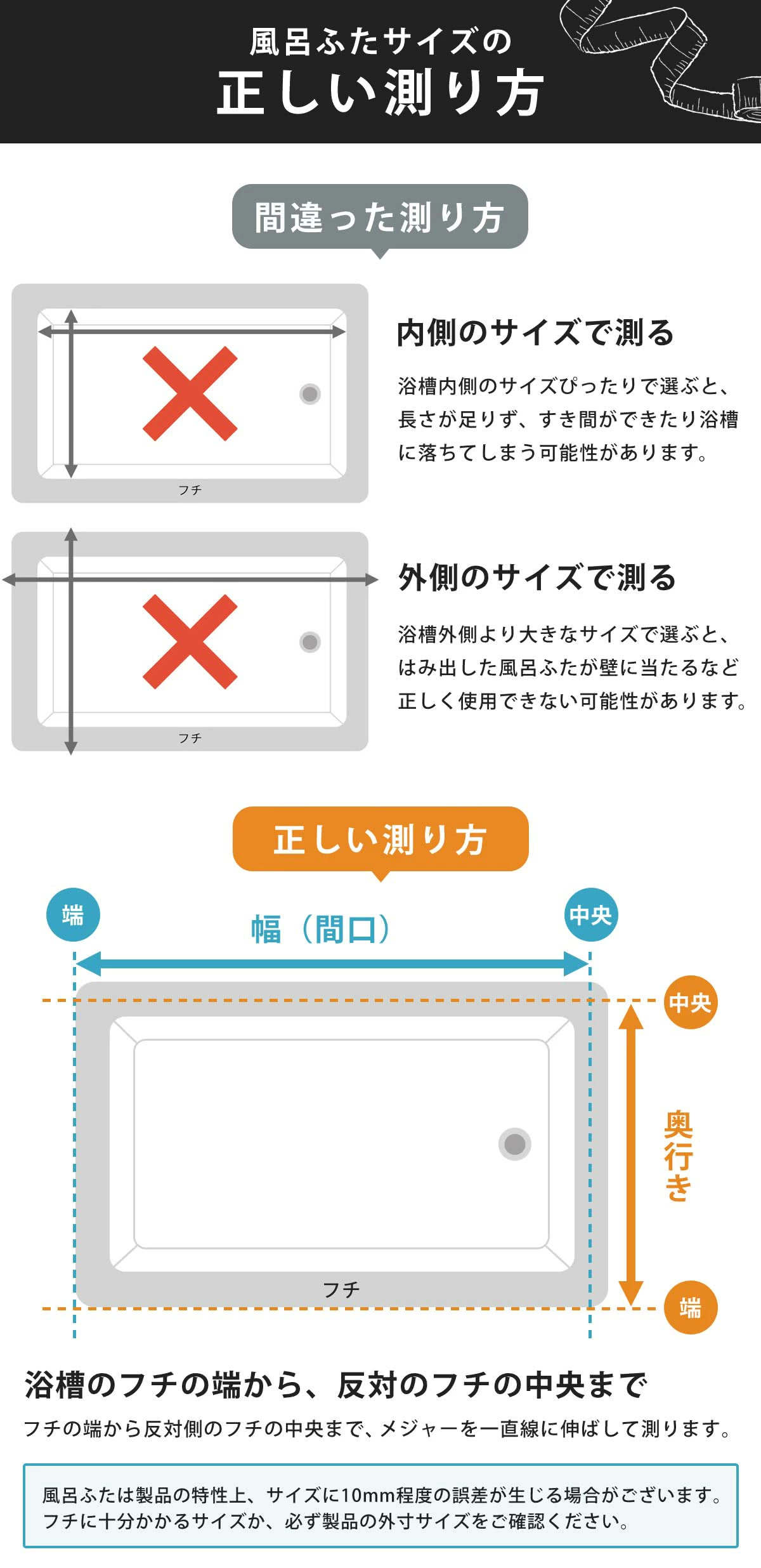ページに記載されているサイズには【規格サイズ】と【実寸サイズ】の2種類あります。