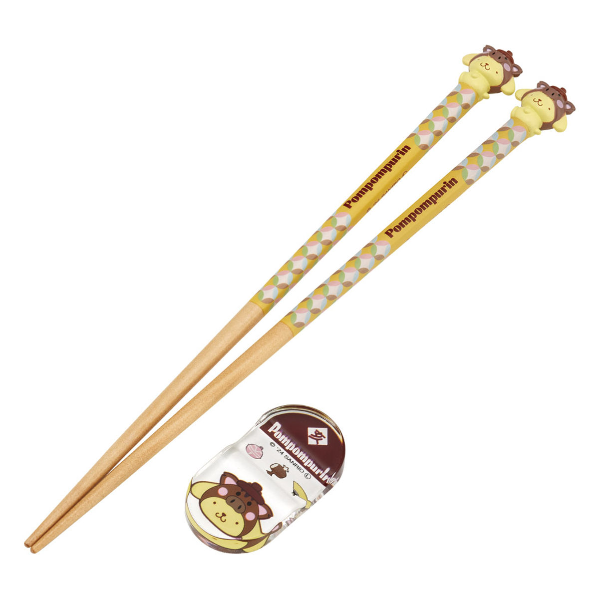 箸 マスコット付箸・箸置き ( 21cm お箸 天然木 キャラクター すべり止め加工 はし ハシ おはし カトラリー 干支 スヌーピー クロミ マイメロディ ハローキティ シナモロール ハンギョドン ポムポムプリン かわいい ) 【ポムポムプリン巳】