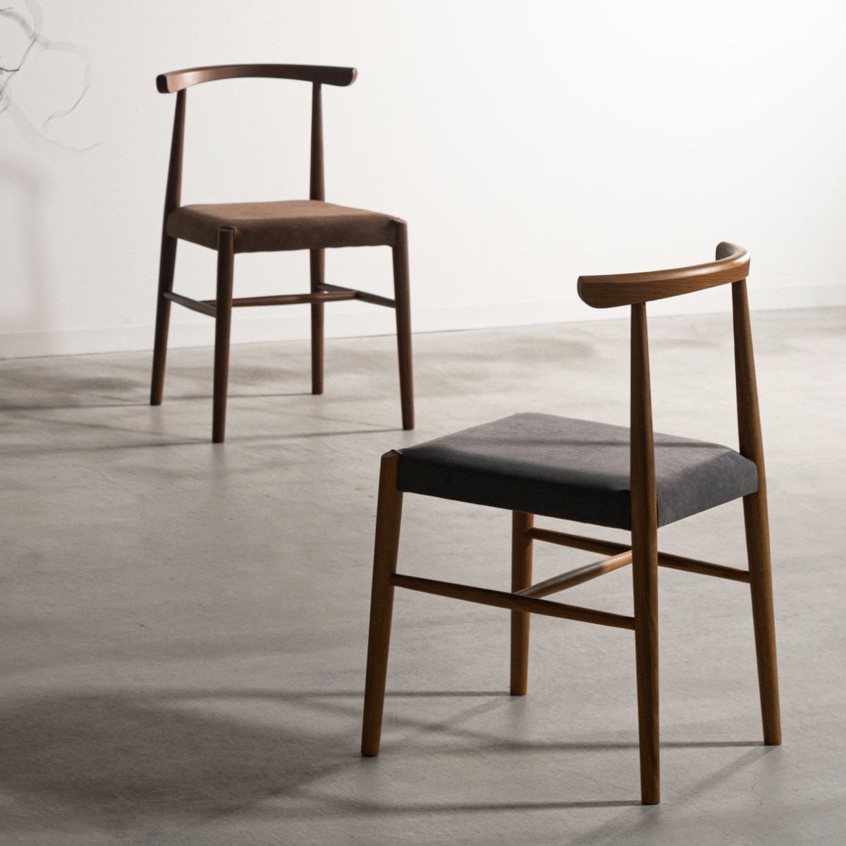 オーク材の美しさに調和する座面生地を採用したダイニングチェアです。天然木のやさしい雰囲気をそのまま楽しめるシンプルなフレームは、飽きがこず、長くお使いいただけます。