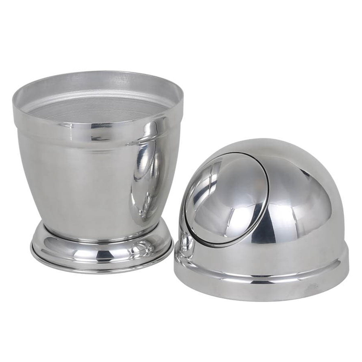 型から研磨まで丹念に作り上げられたアルミ製のゴミ箱です。宇宙を思わせるメタリックボディに、ドーム型のフォルムが印象的です。インテリアの一部として、お部屋をおしゃれな空間にしてくれます。