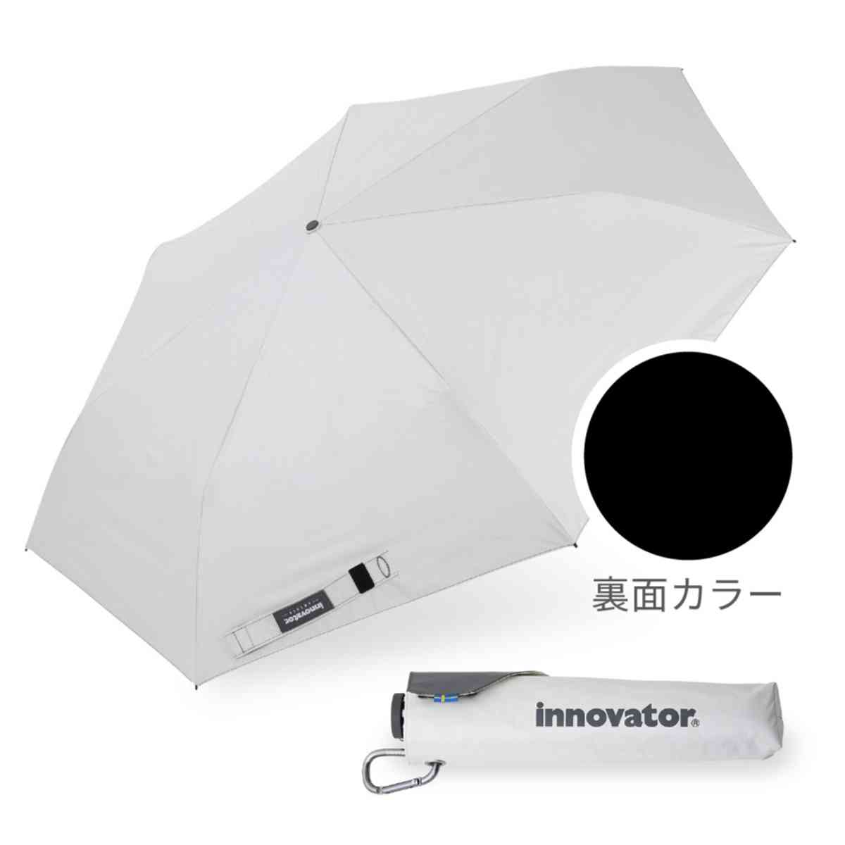 折りたたみ傘 innovator スリム 晴雨兼用 手開き式 60cm ( 傘 折り畳み傘 メンズ レディース かさ おしゃれ 北欧 無地 雨傘 UVカット 100% 撥水 遮熱 遮光 日焼け防止 UV対策 暑さ対策 カサ アンブレラ 通勤 通学 カラビナ付き ) 【シルバー】